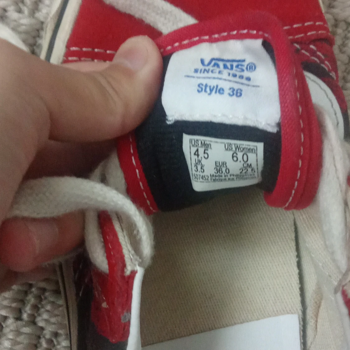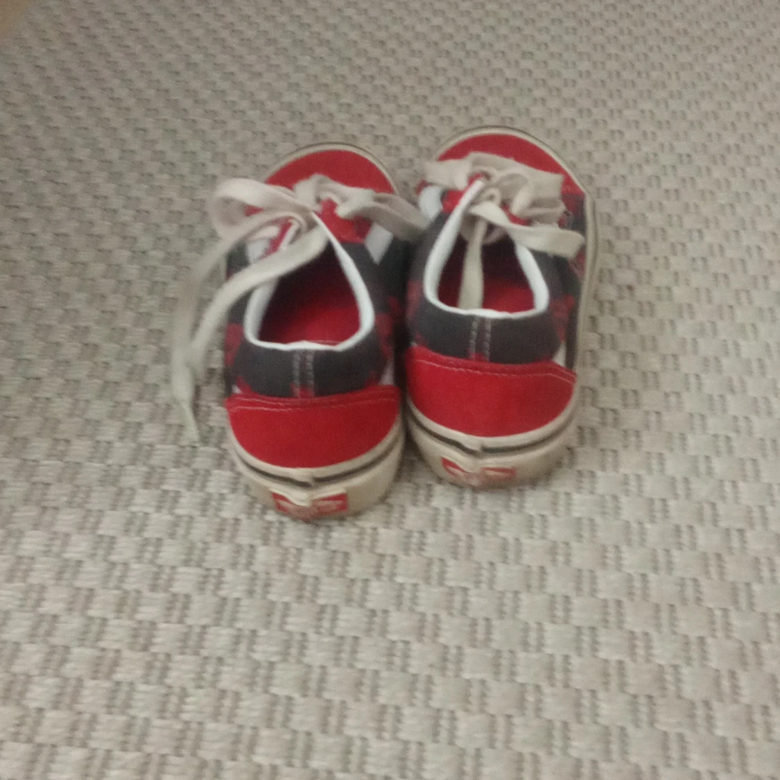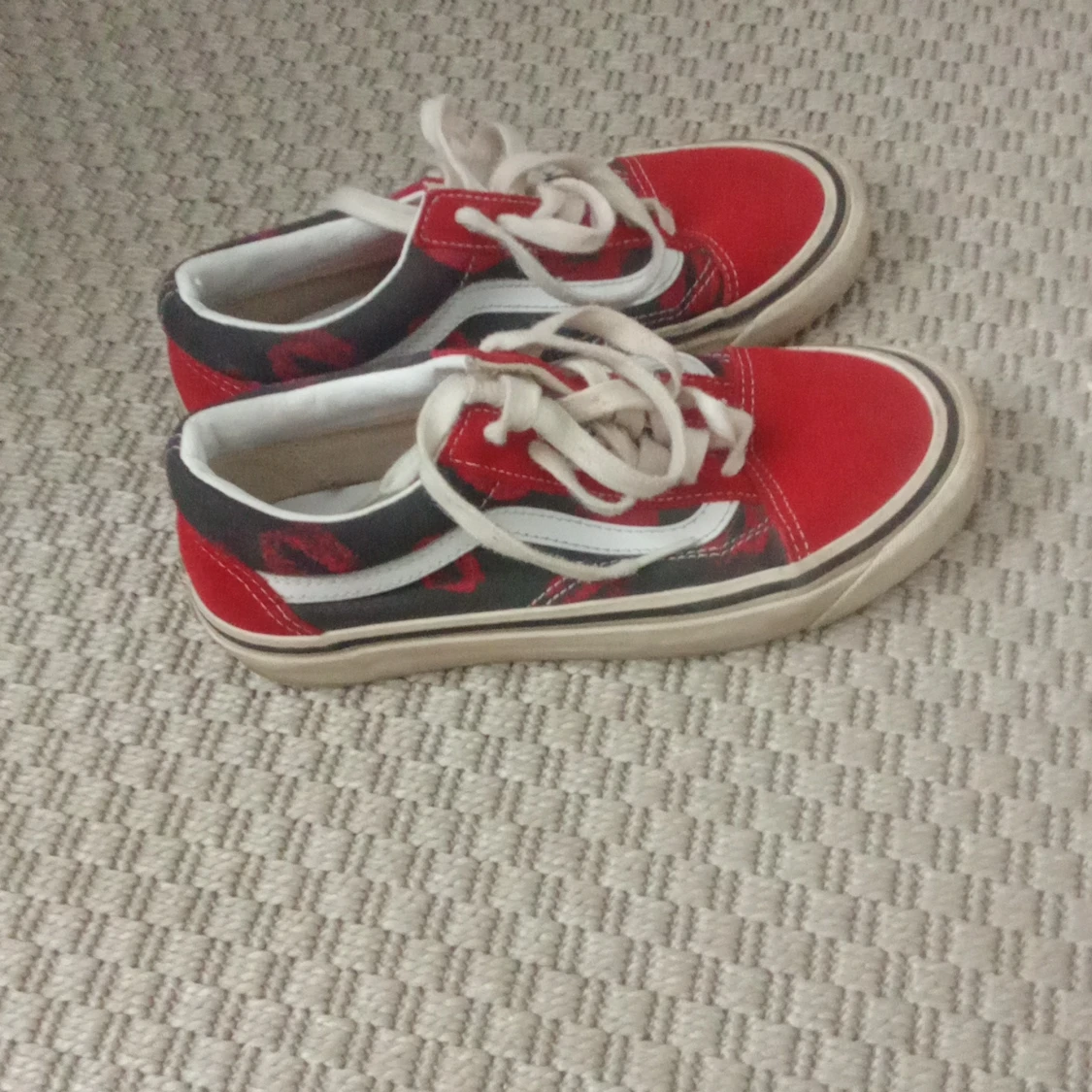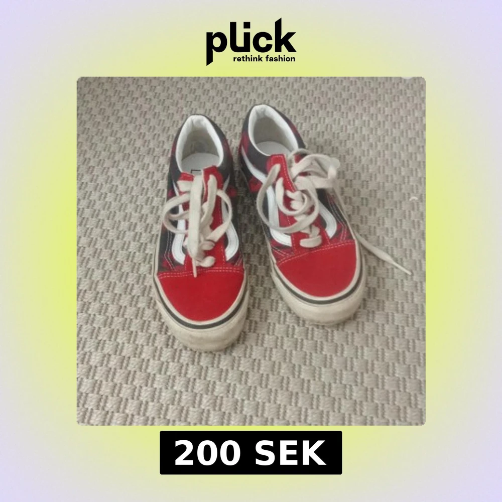 Snygga Vans Old Skool sneakers i rött och svart med vita detaljer och klassisk sidorand. Skorna har snörning, platt sula och rund tå. Ovandelen är i mocka och canvas, perfekt för dig som gillar streetstyle och skatekänsla.