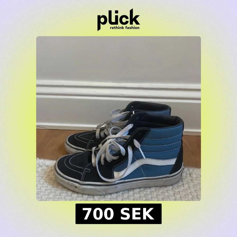 Snygga högskaftade sneakers från Vans i svart och blått med vita detaljer. Skorna har klassisk snörning och den ikoniska sidostripen i vitt. Perfekta för en avslappnad stil.