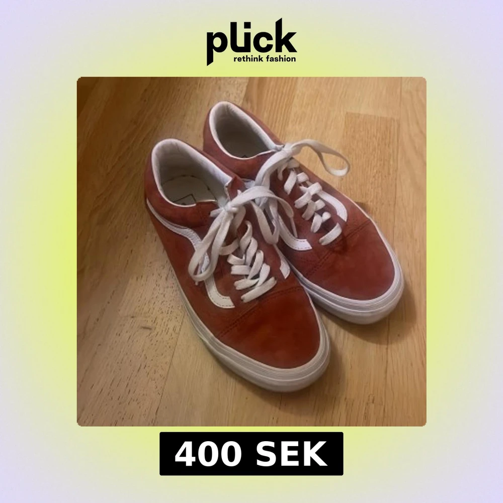 Säljer ett par klassiska Vans Old Skool sneakers i röd mocka med vit sula och vit sidostrip. Skorna har snörning och den ikoniska gummisulan med rutmönster. Perfekta för dig som gillar streetstyle och vill ha en tidlös look.