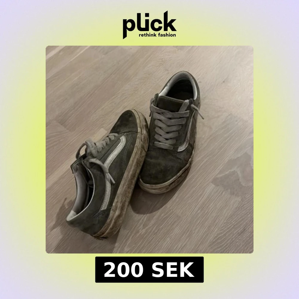 Säljer ett par klassiska Vans Old Skool sneakers i grå mocka med vit sidorand och snörning. Dem är för små nu och priset kan värköigen diskuteras kan tänka mig gå ner i pris för att Dme är rätt smutsiga annars inget fel förutom smuts utan inga håll eller någon! Kostar 900 ordinarie pris