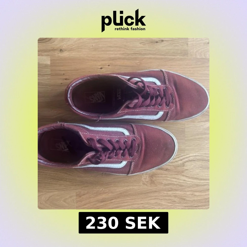 Säljer ett par klassiska Vans Old Skool sneakers i vinrött med vit sidorand och vit sula. Skorna har snörning och är tillverkade i canvas med detaljer i syntet. Perfekta för dig som gillar streetstyle och vill ha en ikonisk look.