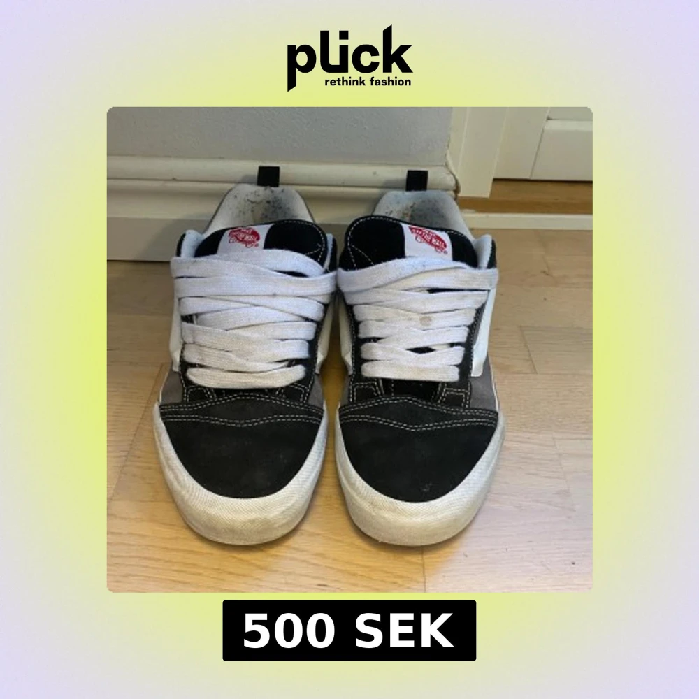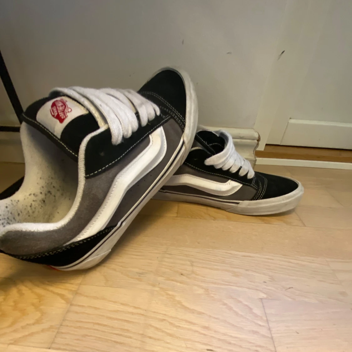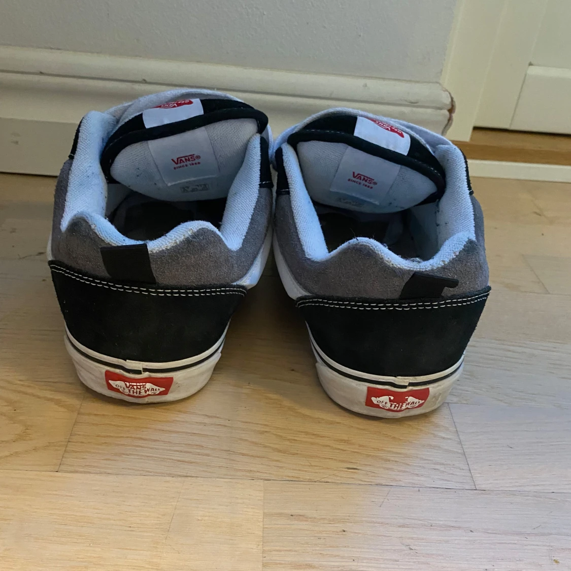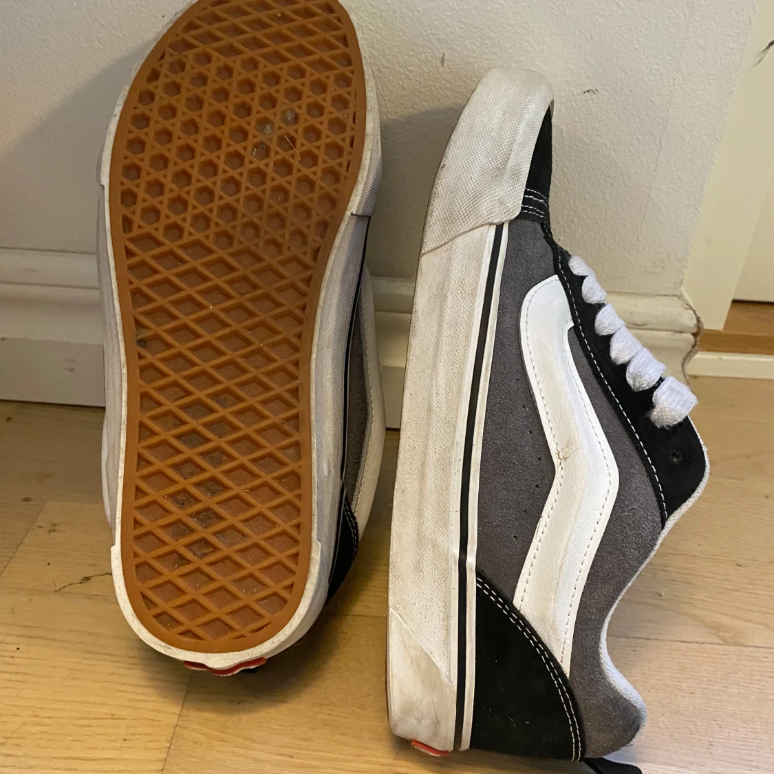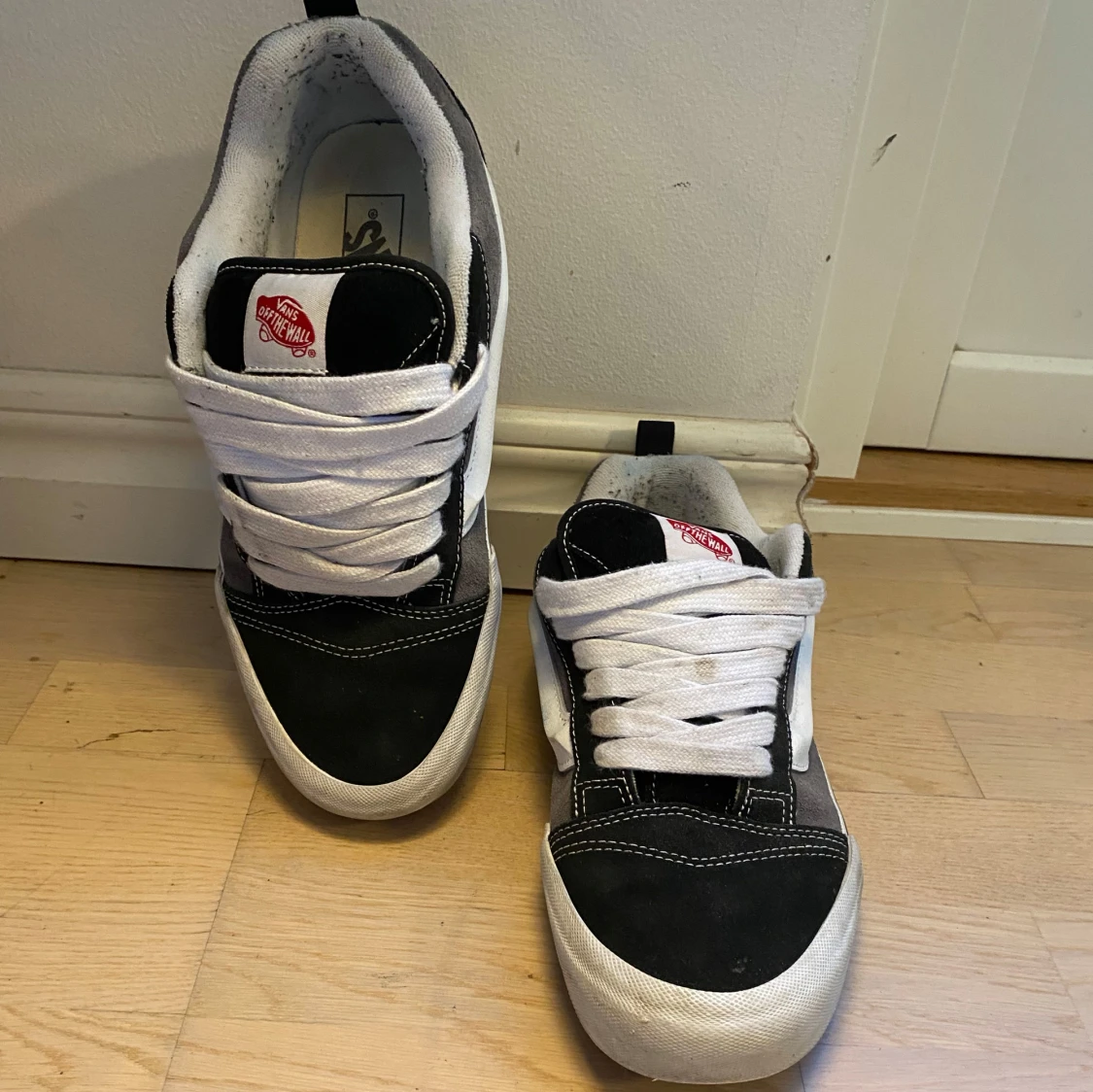 Vans Knu Skool sneakers i svart och grå mocka med vit sula och vit sidostrip. Skorna har en fet vit snörning och rund tå. Perfekta för en streetwear-look och passar till det mesta.