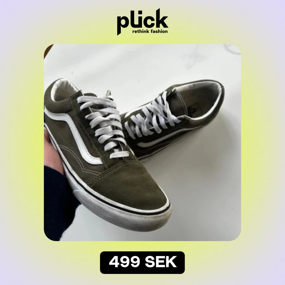 Ett par Vans i en riktigt snygg, mörkgrön färg som är hyfsat svåra att få tag i. Sparsamt använda under 2 månaders period så skulle säga skicket är 8.5/10. Enda tecken på användning är lite smuts på sulan. Nypris runt 8-900.
