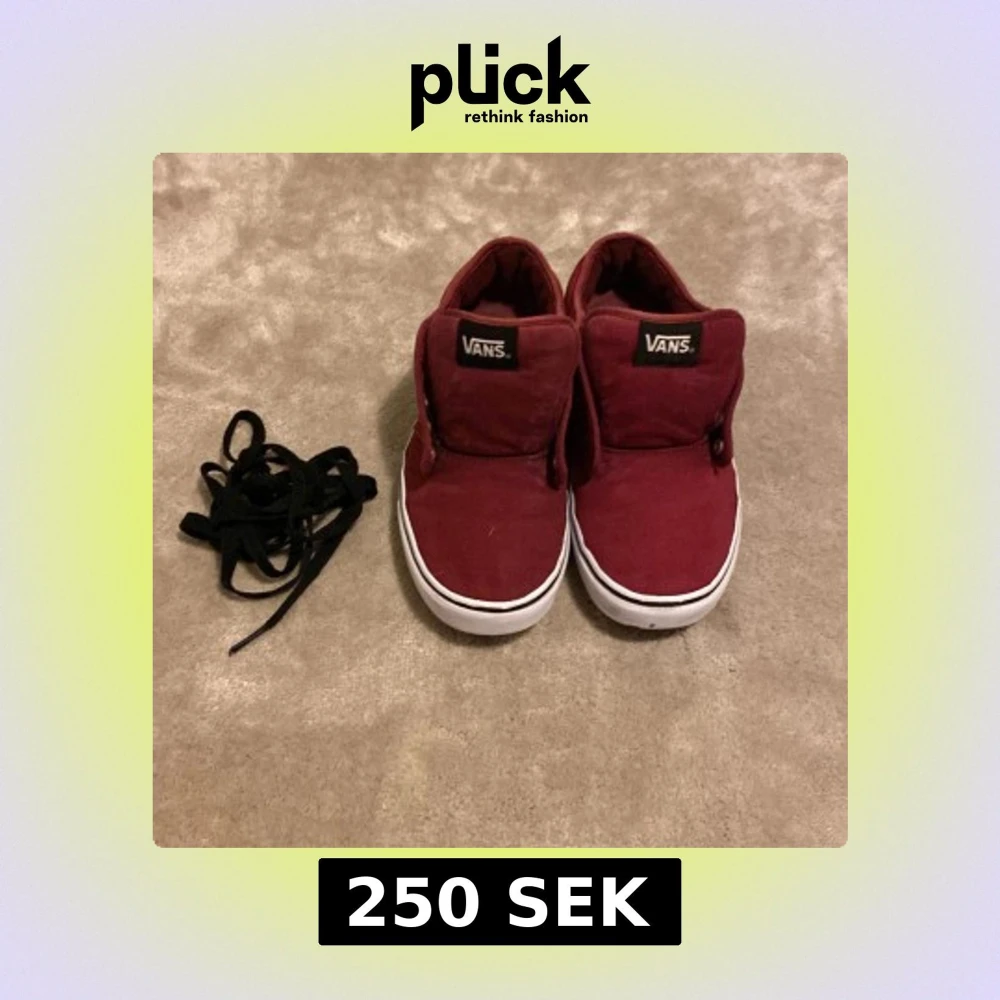 Säljer ett par vinröda Vans sneakers i textil med klassisk vit sula och svart Vans-logga på plösen och hälen. Skorna har rund tå, platt sula och kommer med svarta skosnören. Är öppen för ett lägre pris vid snabb affär. Om ni har några frågor skriv gärna!