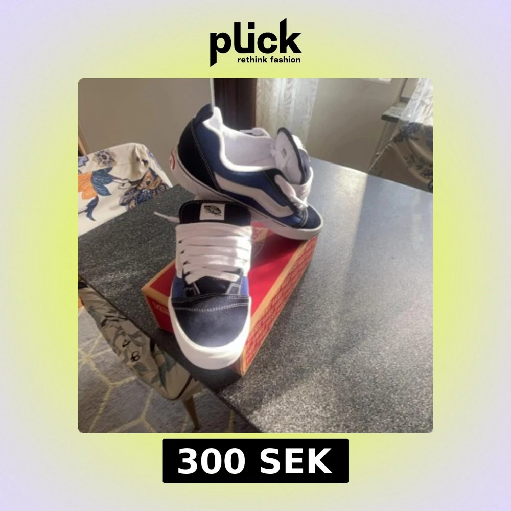Säljer ett par klassiska Vans Old Skool sneakers i marinblått och vitt. Skorna har vit sula, vit sidestripe och vita snören. Ovandelen är i mocka och canvas med tydliga kontrastsömmar. Perfekta för dig som gillar streetstyle och skatekänsla. Storlek 42 men passar upptill ca 44.5