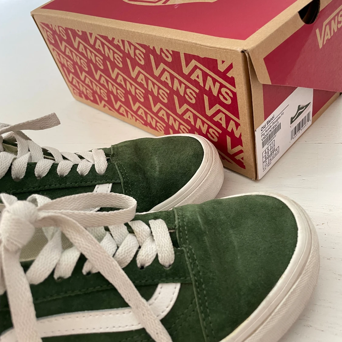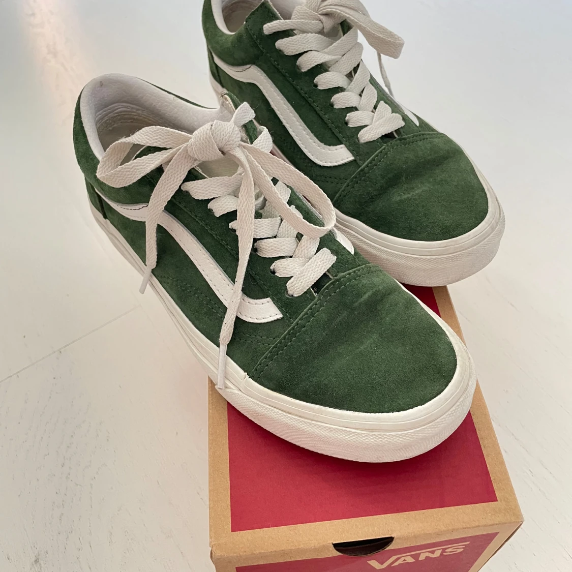 Säljer mina Vans i grön mocka stl 36 i fint skick. Tyvärr något för små för mig då jag lutar mer åt storlek 37. Orginalkartong medföljer. 💚