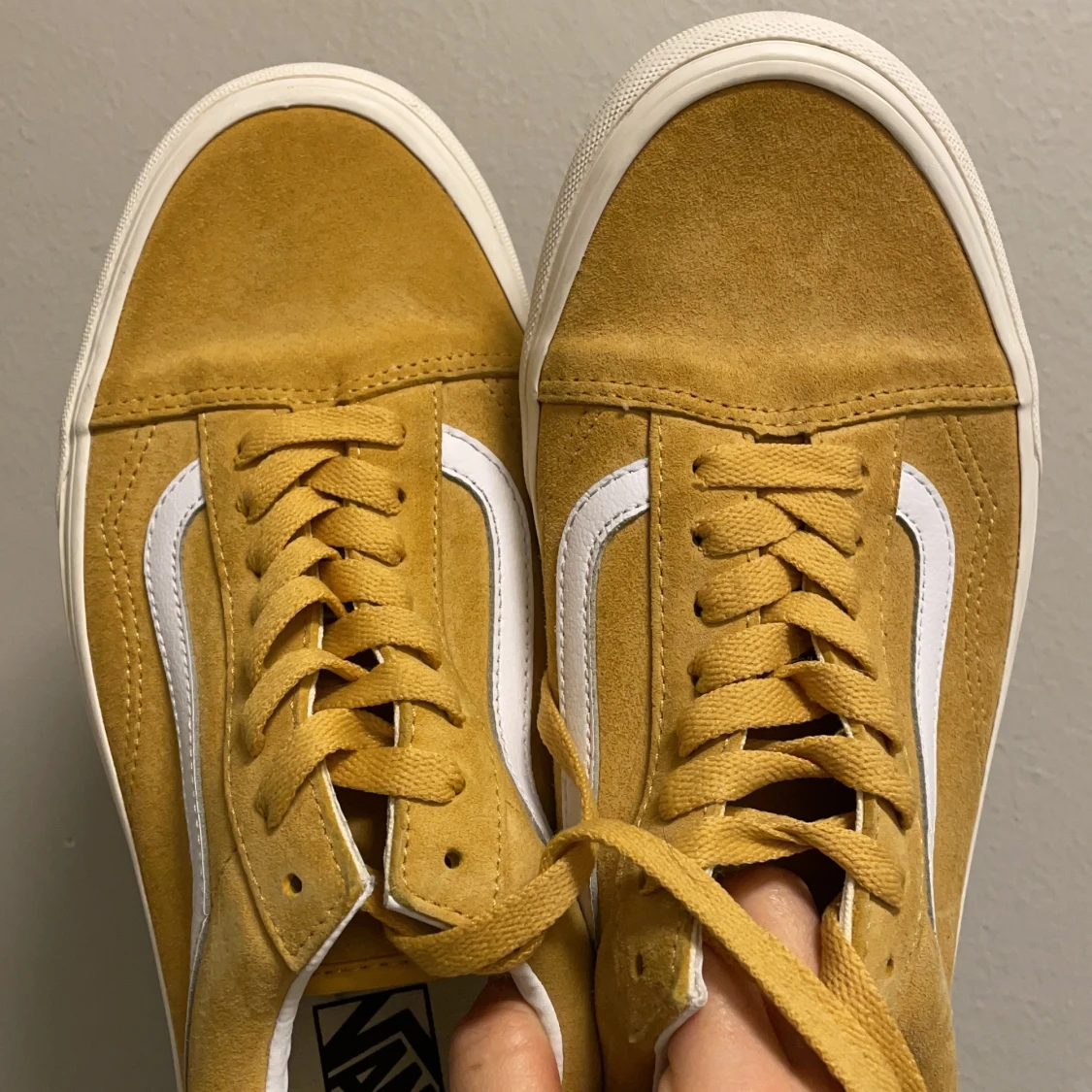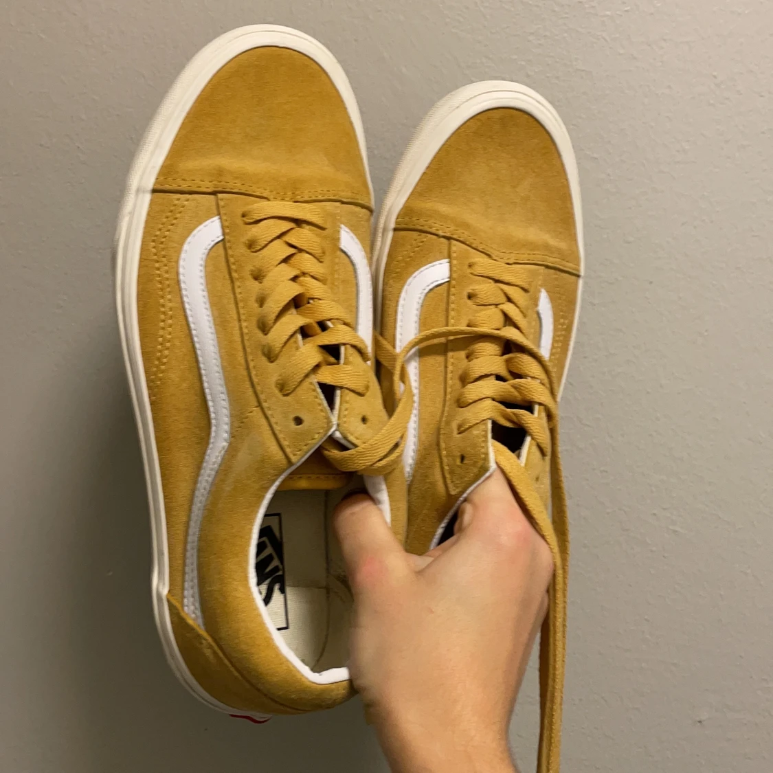 My boyfriend bought and didn’t use them!, so the color is like mustard and they are in perfect condition