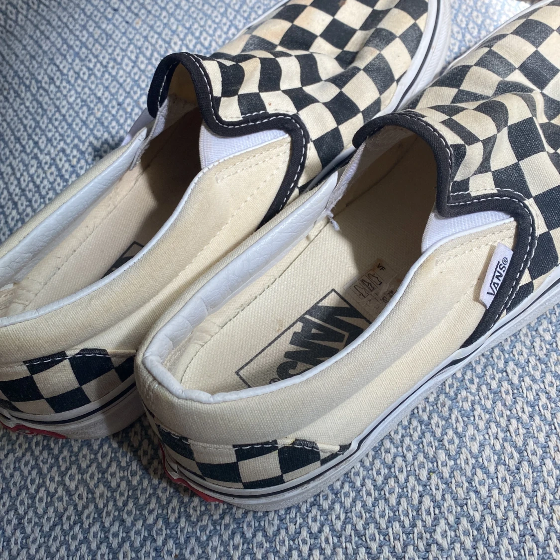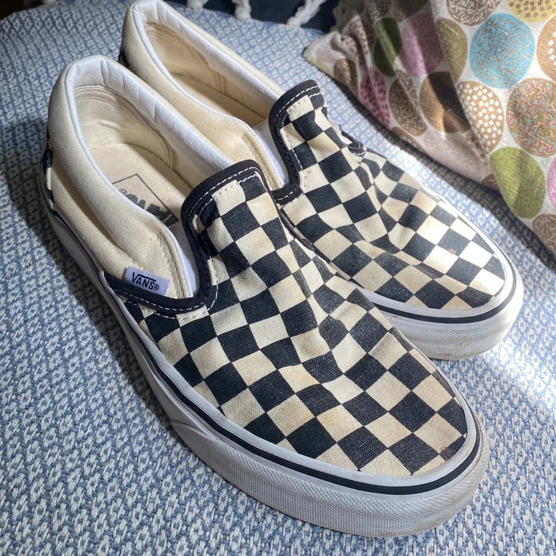 Snygga VANS i rutigt. Svart/beige. Lite smuts men har inte testat tvätta dom. Jättefint skick, inget slitet.