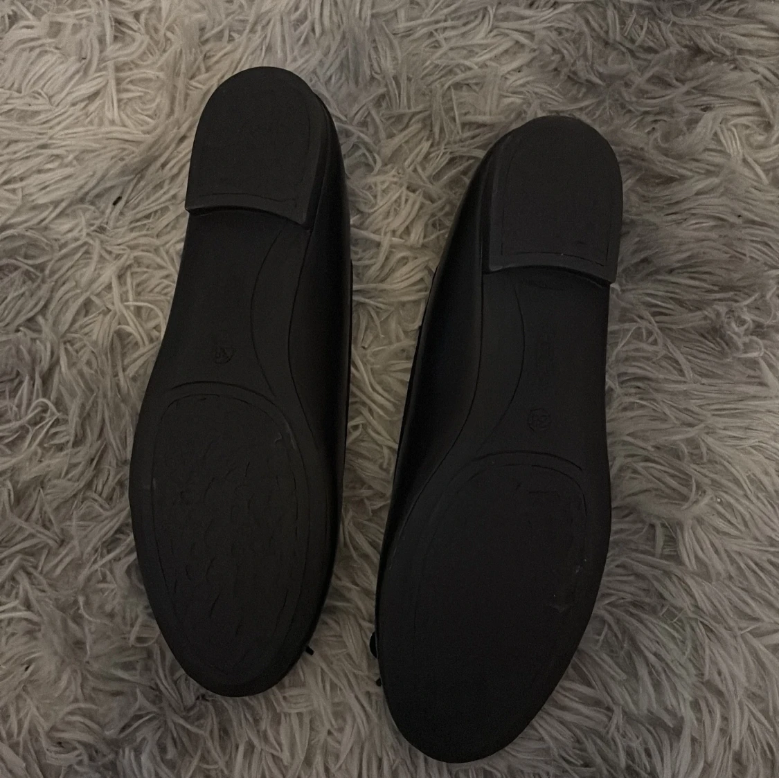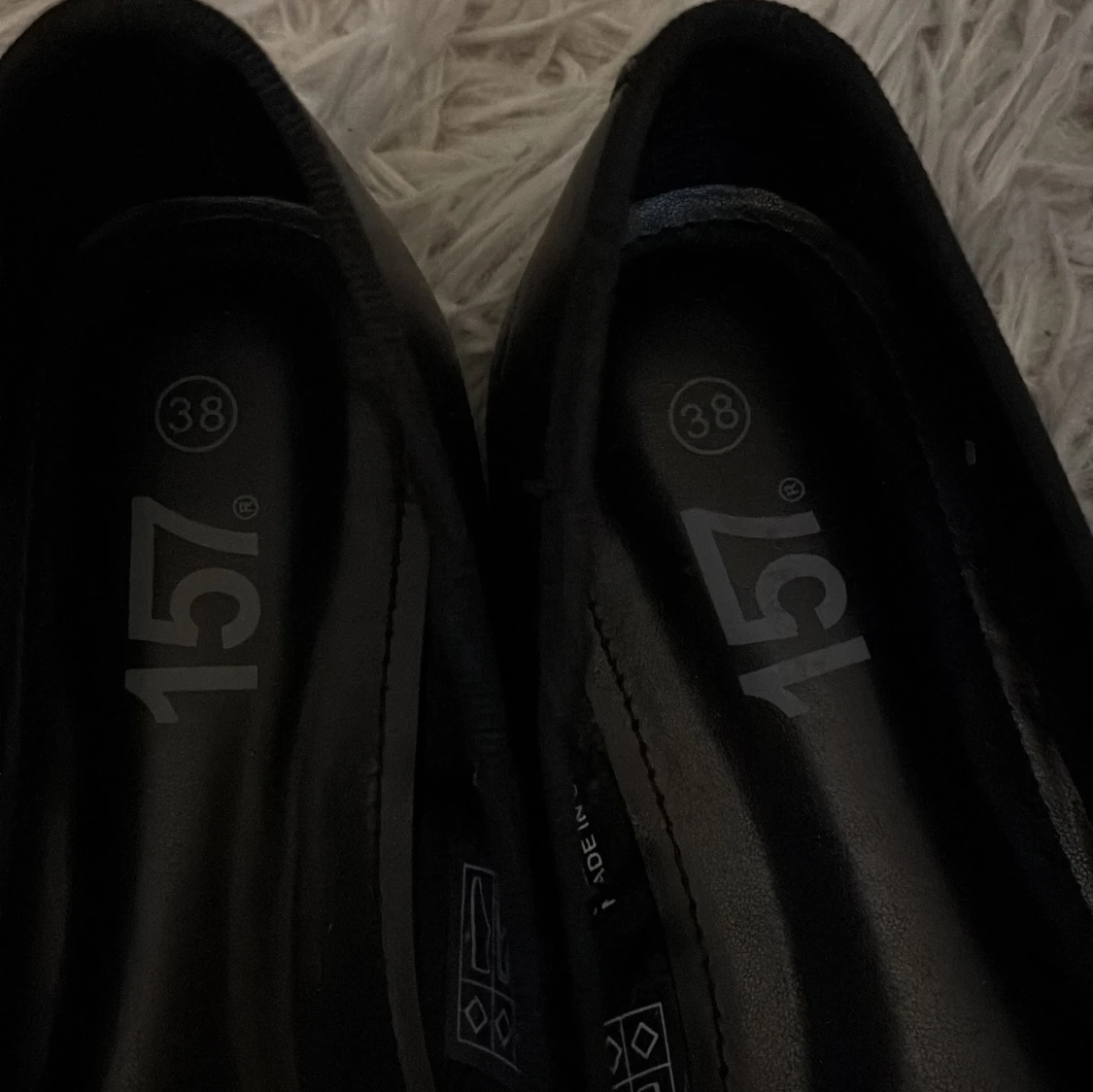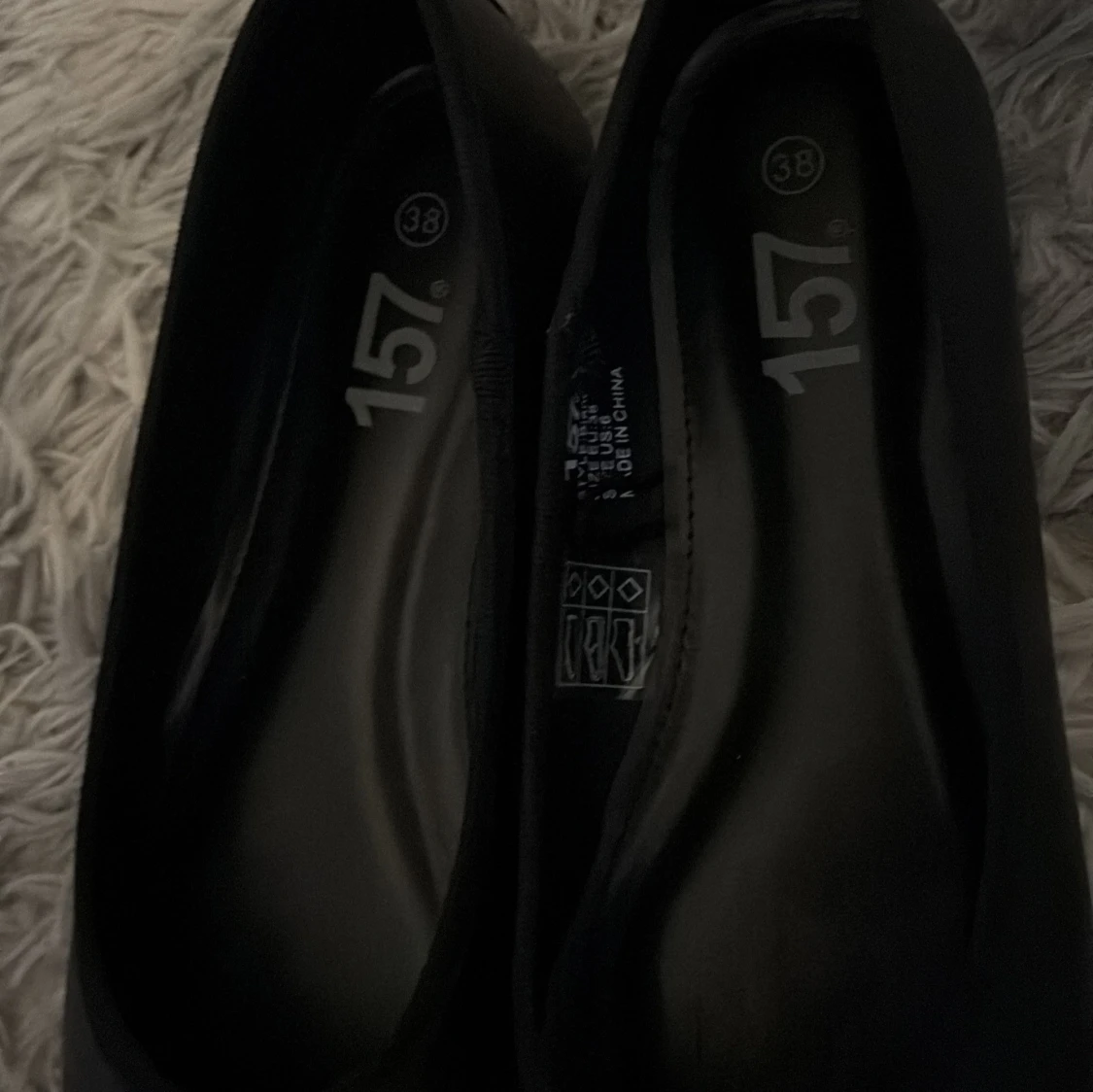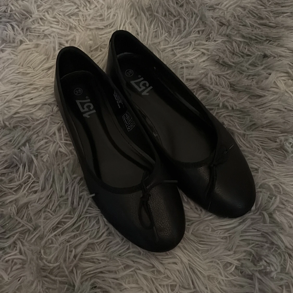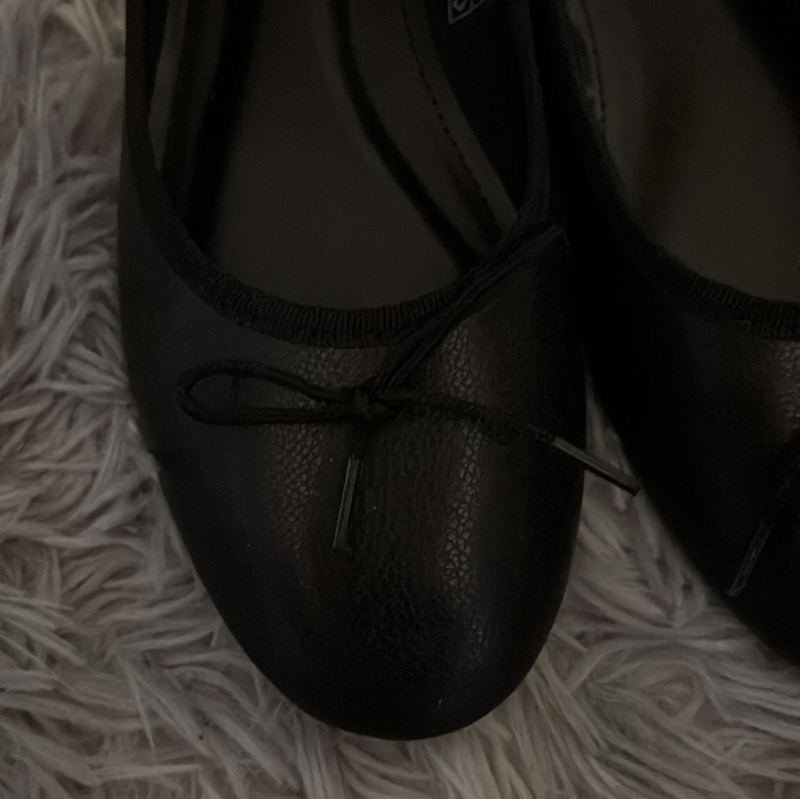 Klassiska svarta ballerinaskor från lager 157 med rund tå och en liten rosett framtill. Skorna har en platt sula och är tillverkade i syntetmaterial. Perfekta för en stilren och enkel look. Skorna är aldrig använda enbart testade och säljer pågrund av att jag beställde fel storlek! Säljer i storlek 38.