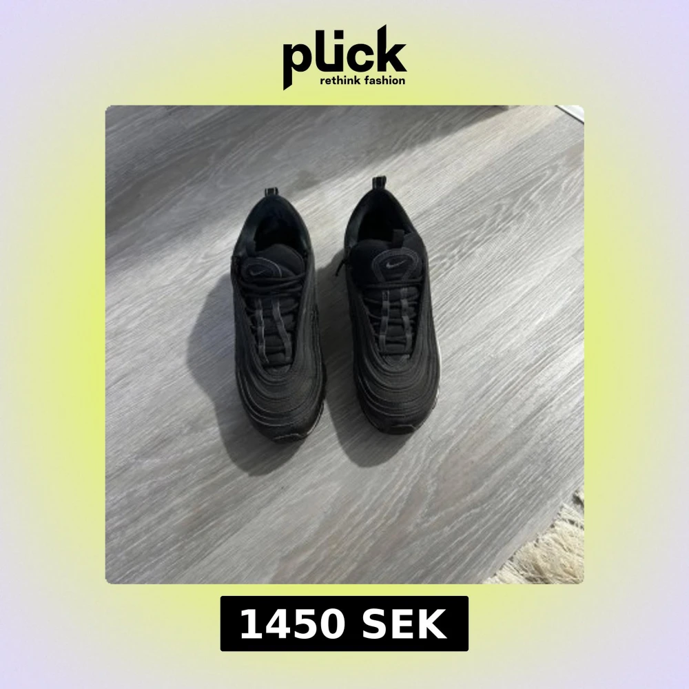 Svarta Nike Air Max 97 sneakers men reflex vid natt tid, använd några gånger förra året. Storlek 41 Nike loggan vid baksidan och har lite svarta träck på bubblorna