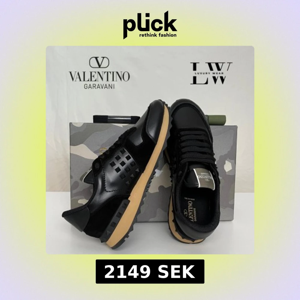 Svarta rockrunners från Valentino. Oanvända i nyskick 10/10. Fråga gärna efter fler bilder eller info! Priset är inte hugget i sten. Skor, dustbag, snörning och box ingår!