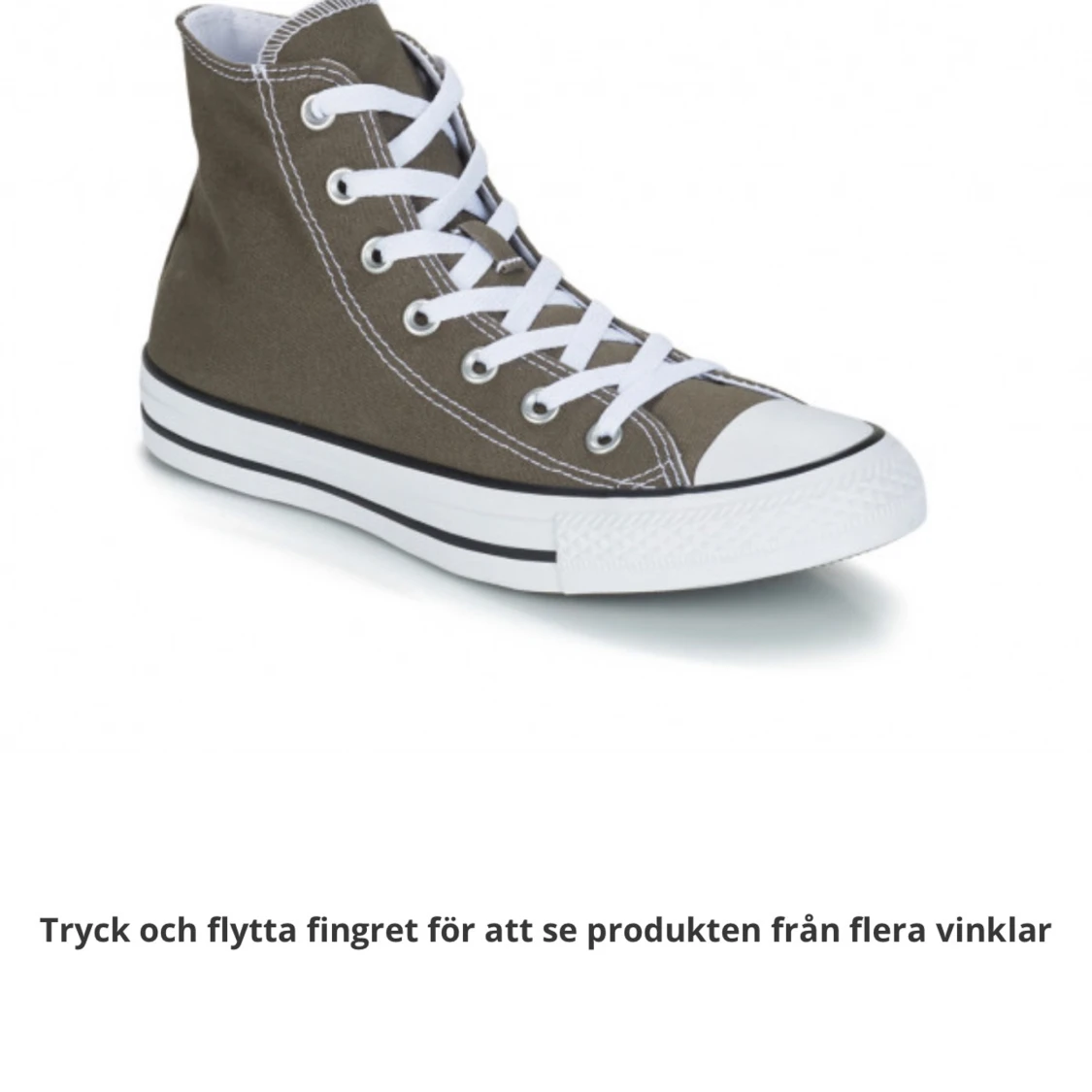 Säljer dessa klassiska Converse All Star high-top sneakers i khaki i storlek 36. Bara använda några få gånger så dem är i väldigt bra skick!