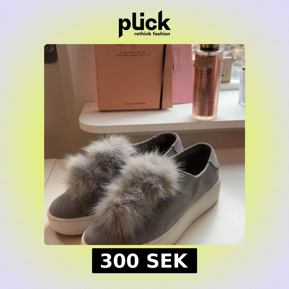 Snygga grå sneakers från Steve Madden med en unik pälsdetalj på ovansidan. Skorna är som nya och endast små fläckar på sulan, annars i super fint skick. Kan posta samma dag som köp