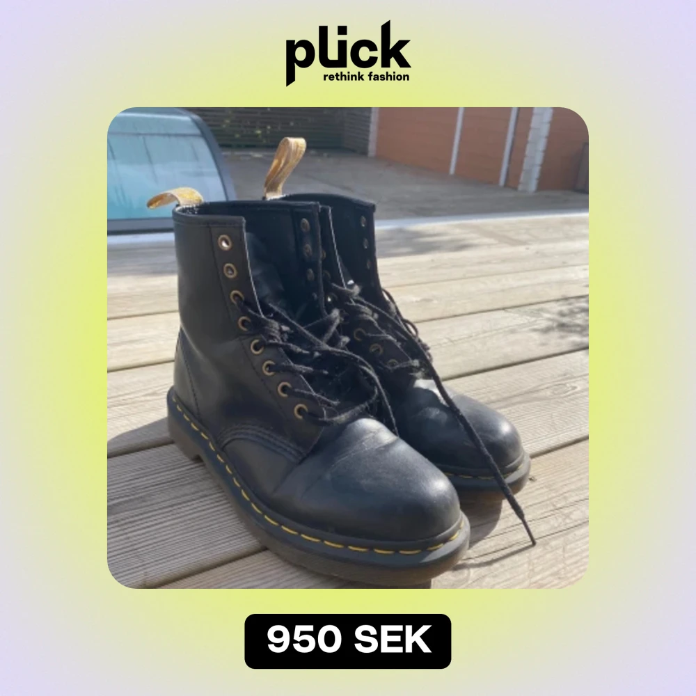 Veganska doc martens som tyvärr inte kommer till användning. Knappt använda och är i bra skick utom några få repor fram på skon (finns bild). Ny pris 2100 kr Modell: 1460 veganska snörkängor i storlek 41 ✨✨ Skitsnygga och passar till allt!