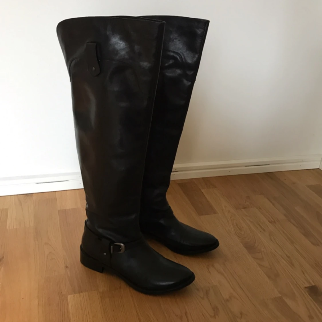 Snygga over-knee stövlar i äkta läder! Storlek 40. (Stövlarna ser mer "glansiga" ut på bild än i verkligheten). Skriv om du vill se fler bilder på dem eller har frågor!