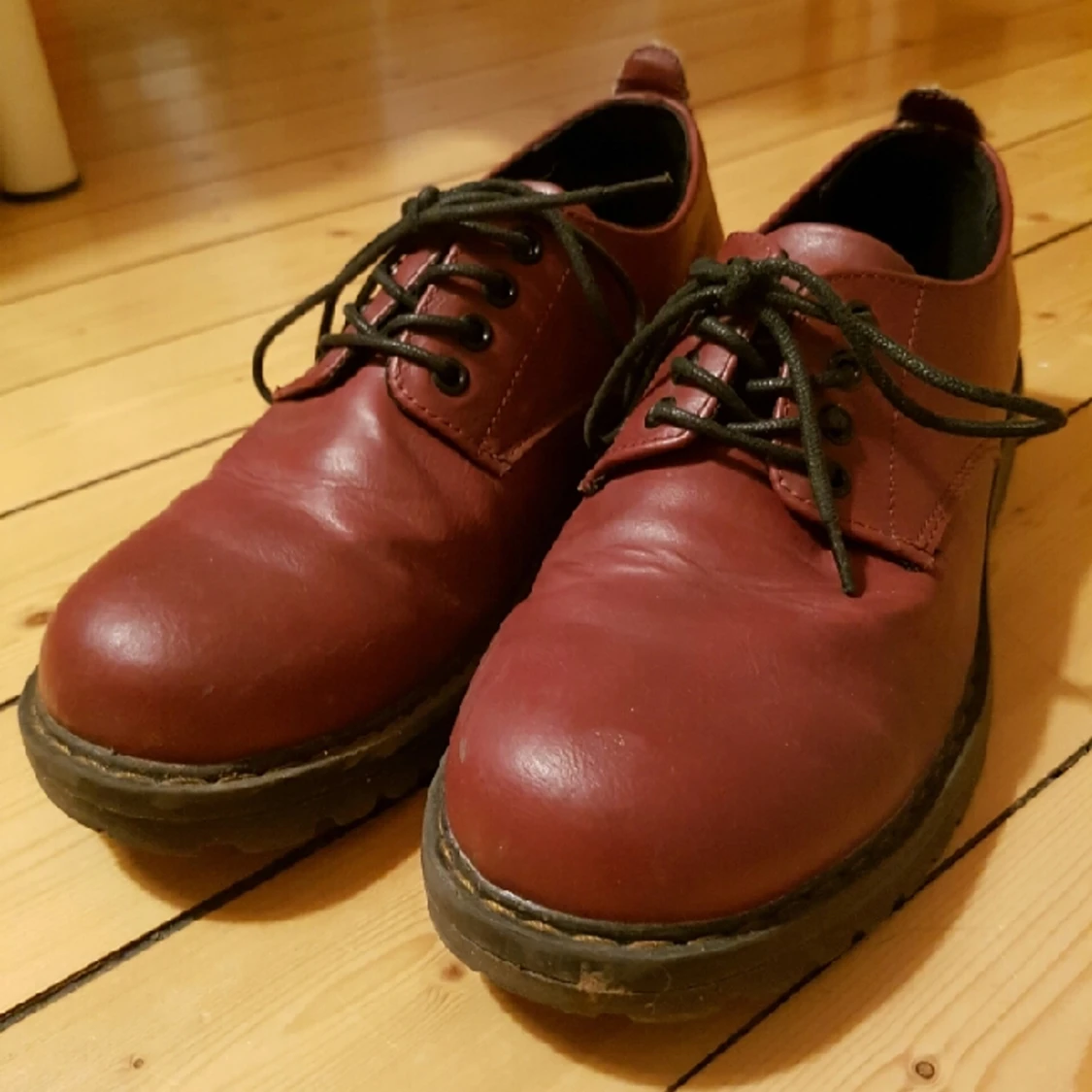 Ett par vinröda låga skor köpta från skopunkten för några år sedan. Väl använda men i gott skick, har endast lite slitage framtill. Har inte rengjort dem på bilden, men vid köp rengör jag dem innan de skickas. Köparen står för frakt. OBS, katt i hemmet.
