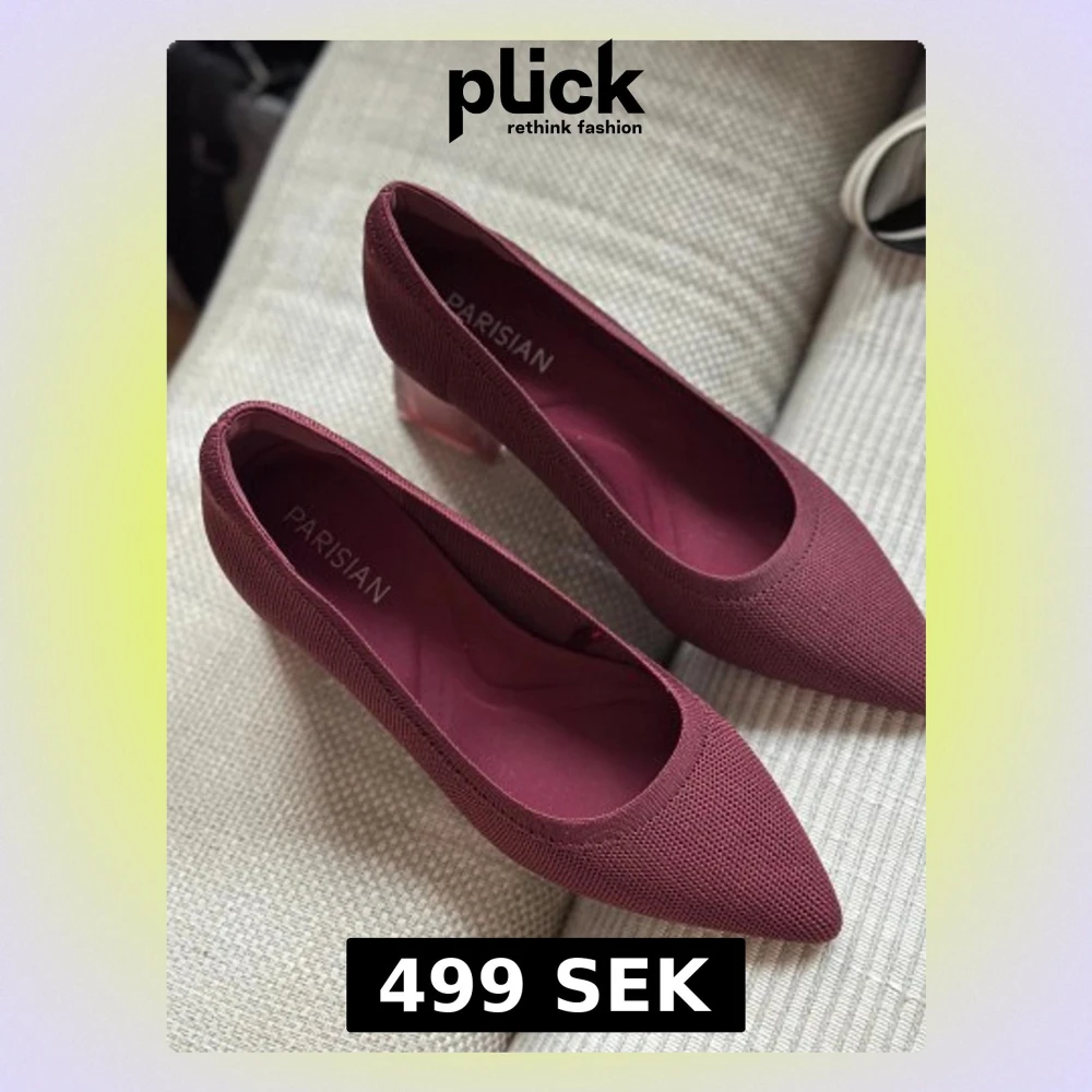 Snygga vinröda pumps från Parisian med stickad ovandel och spetsig tå. Skorna har en unik transparent klack i rosa plast som ger en modern touch. Perfekta för dig som vill sticka ut med både färg och form.