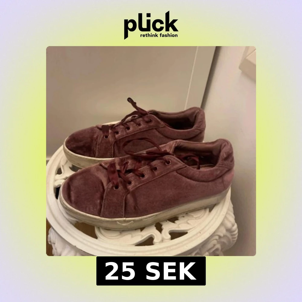 Snygga vinröda sneakers i sammet med matchande vinröda snören och vit platt sula. Skorna har rund tå och klassisk sneakerform, perfekta för dig som vill ha en unik touch på vardagslooken.