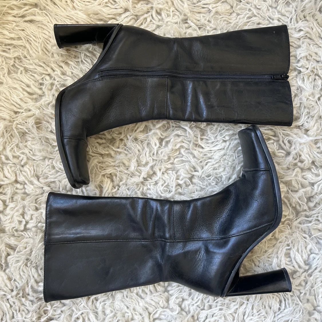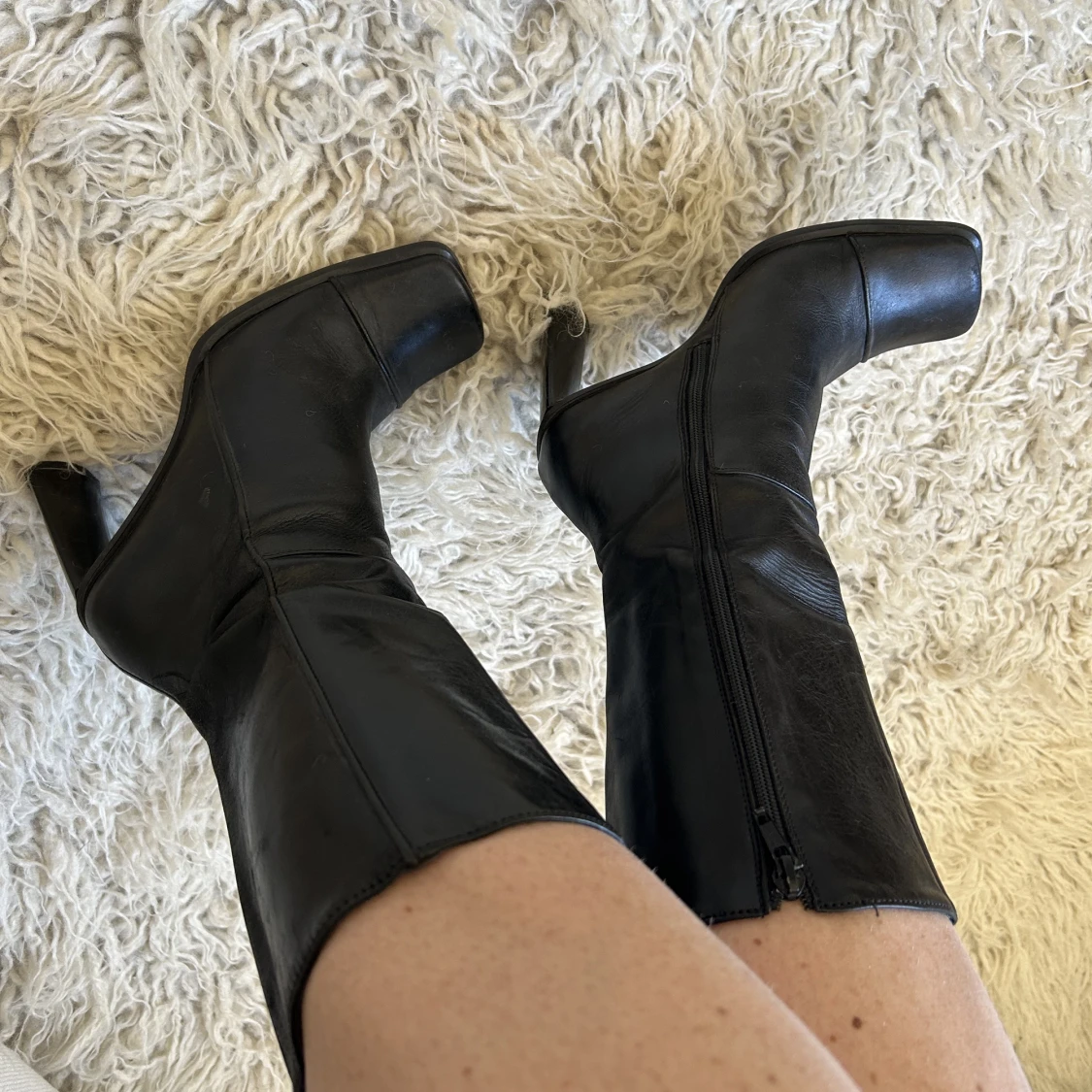 Italienska stövletter (vintage Donna Piu) i äkta skinn. Fyrkantig tå, tight på vaden, bekväma att gå i. Den perfekta stövletten till både klänning och jeans.
