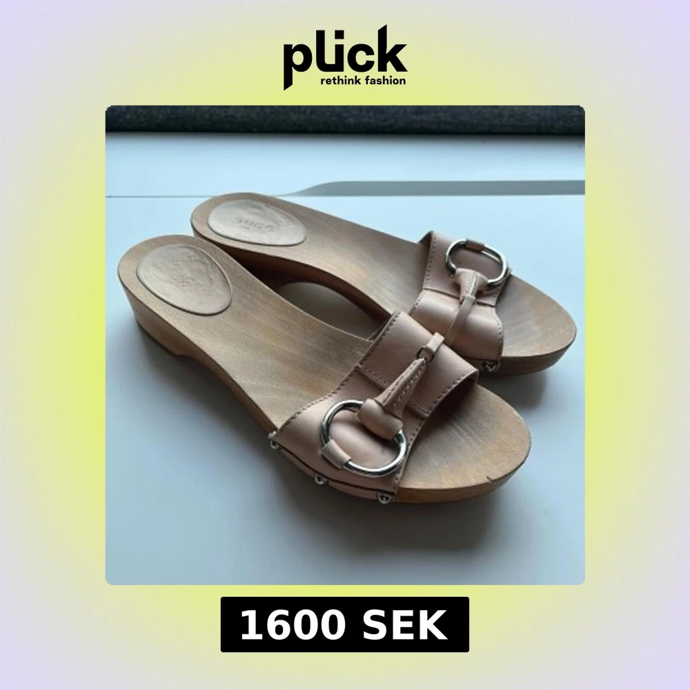 Så snygga trä sandaler med aprikos rosa färg och silver detaljer från Gucci😍. De har en mindre klack. Det stor ingen storlek med passar 36/37. Perfekt för en retro o stilig look!