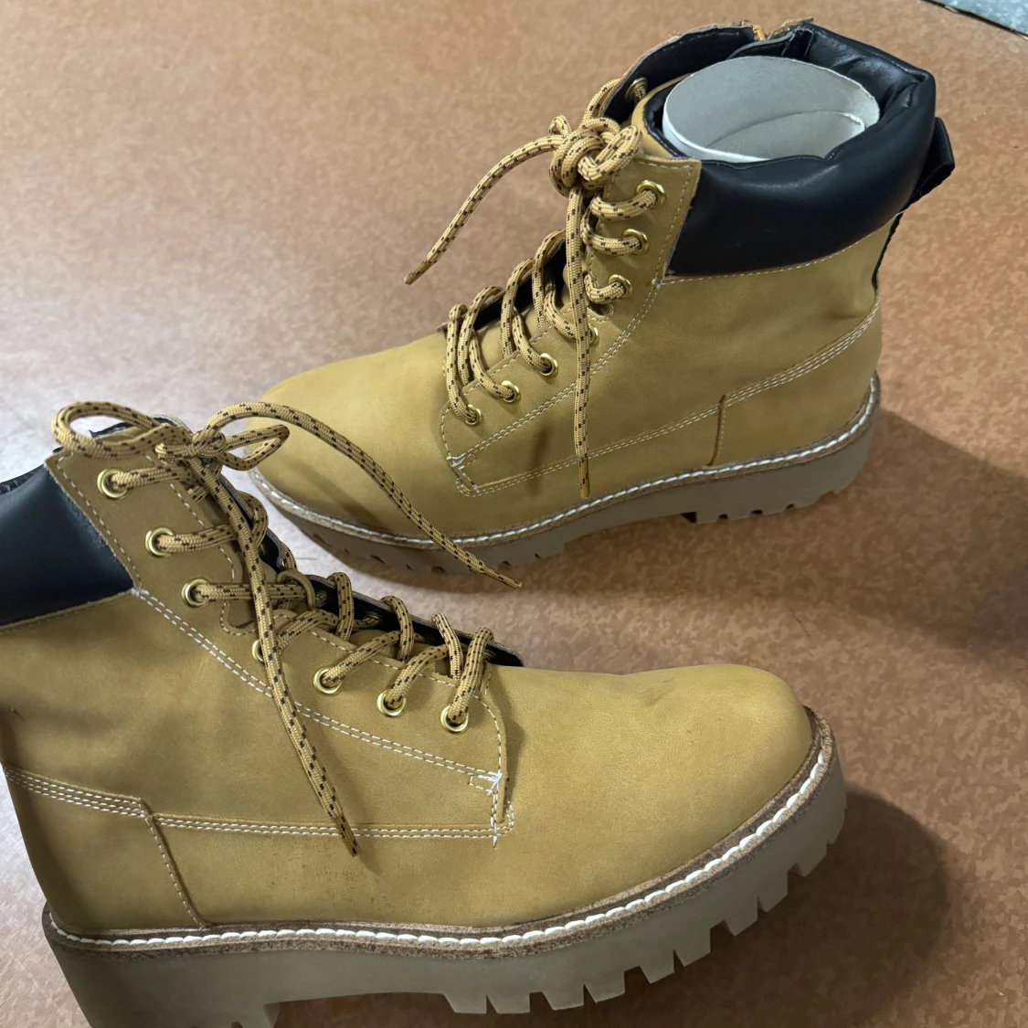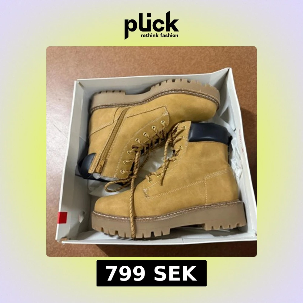 Säljer ett par snygga beiga boots i storlek 38. Tillverkade i mockaliknande material och perfekta för höst och vinter.