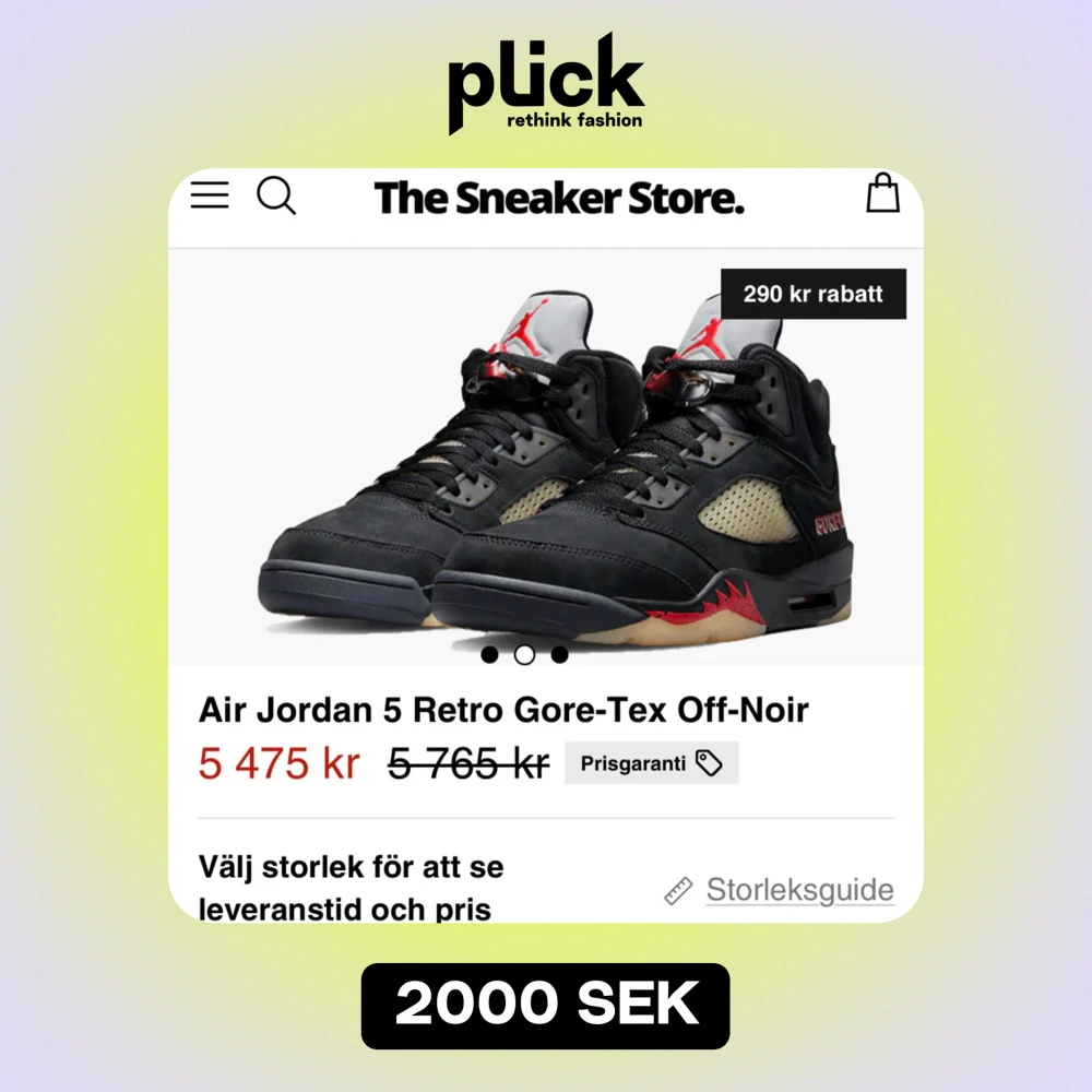 Säljer ett par Air Jordan 5 Retro Gore-Tex i färgen Off-Noir. Skorna har en cool svart design med röda detaljer och en unik sula. De är perfekta för både samlare och sneakerheads. Skorna är i bra skick och kommer med originalkartong. Perfekta för höst och vinter!