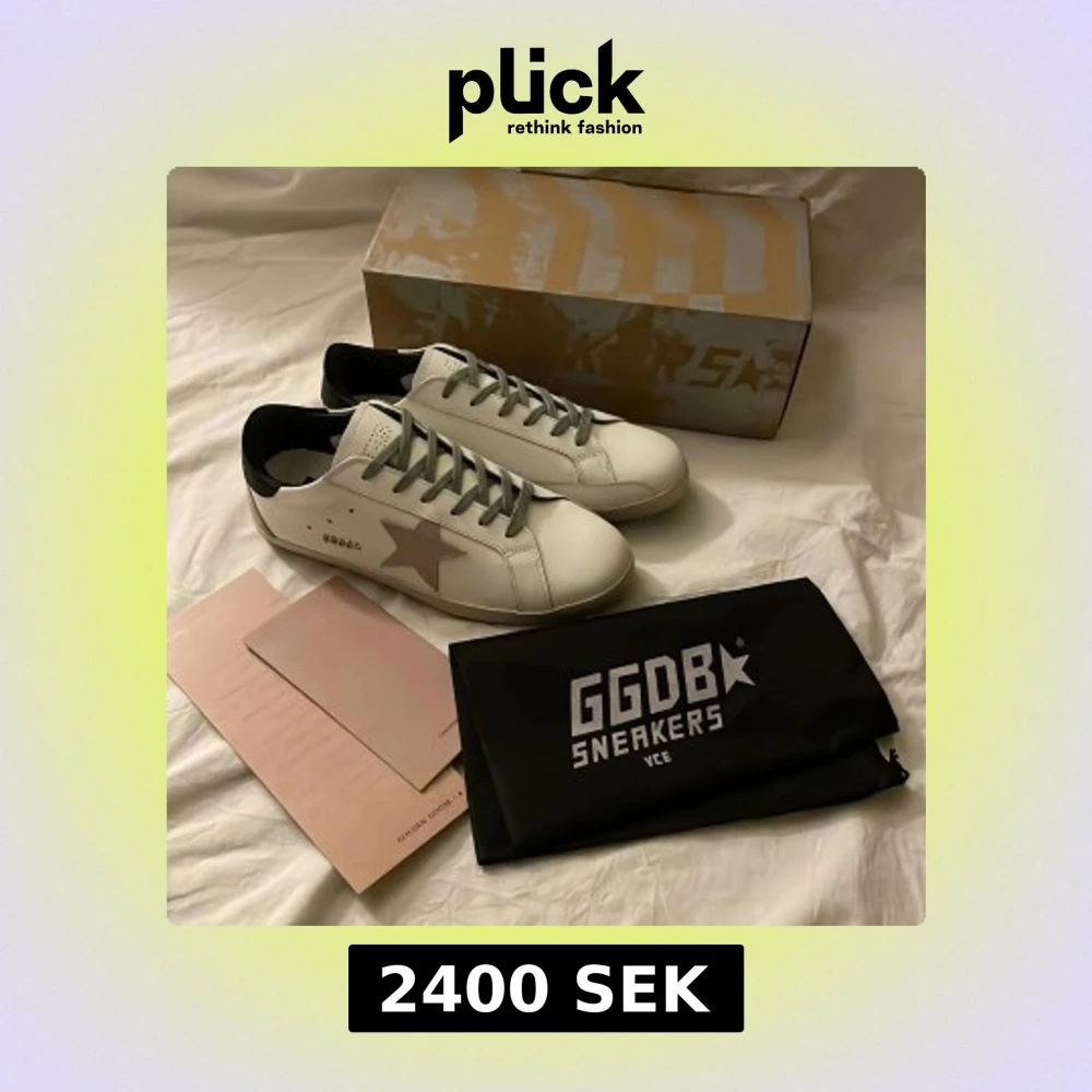 Snygga vita sneakers från GGDB med en stjärndetalj på sidan. Skorna har grå snörning och en svart häl. Perfekta för en stilren look.