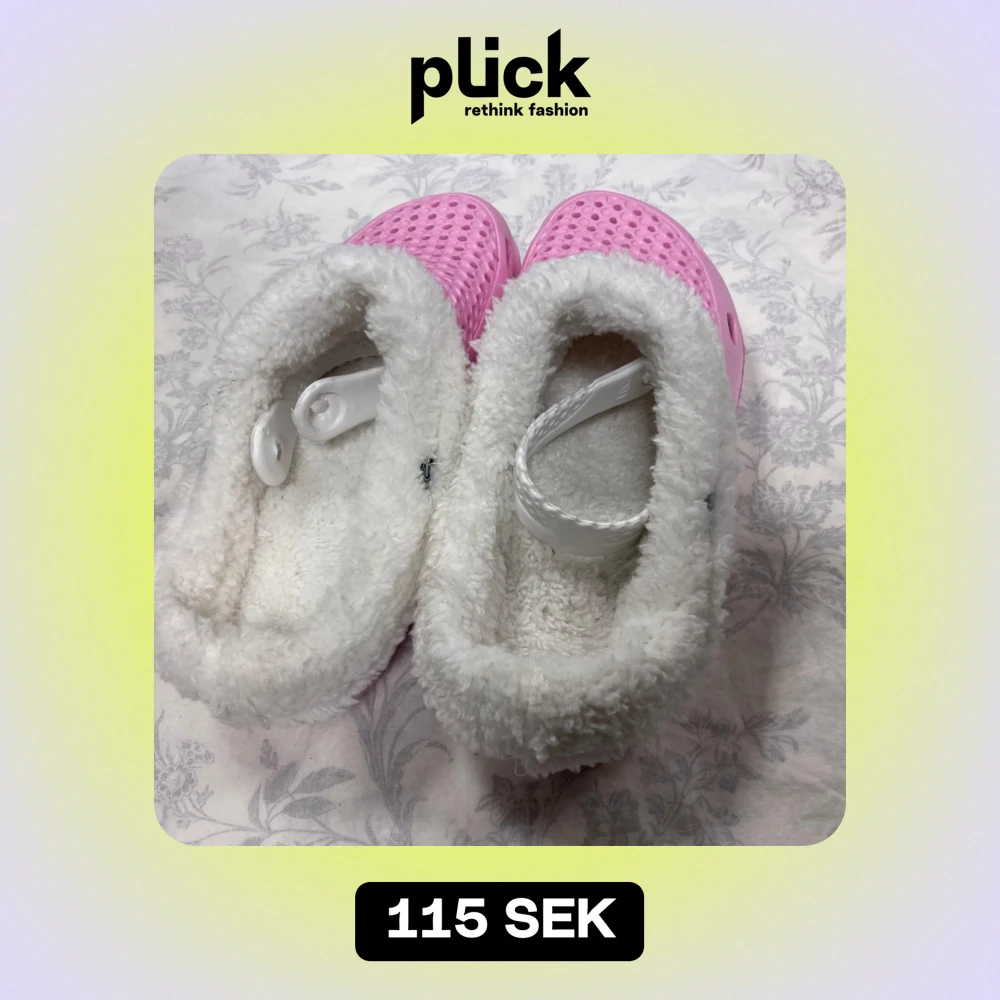 Supermysiga rosa tofflor med vitt fluffigt foder. Perfekta för att hålla fötterna varma och sköna. De har en praktisk rem för bättre passform och en mönstrad sula för bra grepp. Perfekta för kalla dagar hemma , Storlek kvar 36 , 38 , 39 Tjocka fleece inuti , rekommenderar att välja 2 Stlk större än som i vanlig. Till exempel storlek 39 passar som storlek 37 i vanligt