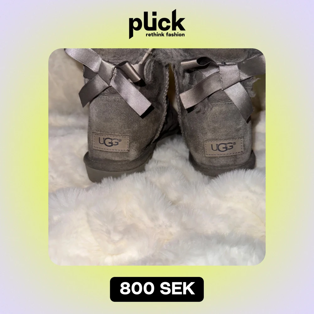 Superfina grå UGG boots i mocka med fluffigt foder och söta rosetter bak. Perfekta för att hålla fötterna varma och mysiga under kalla dagar. Storlek 37.