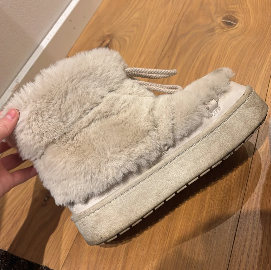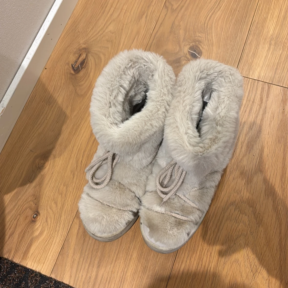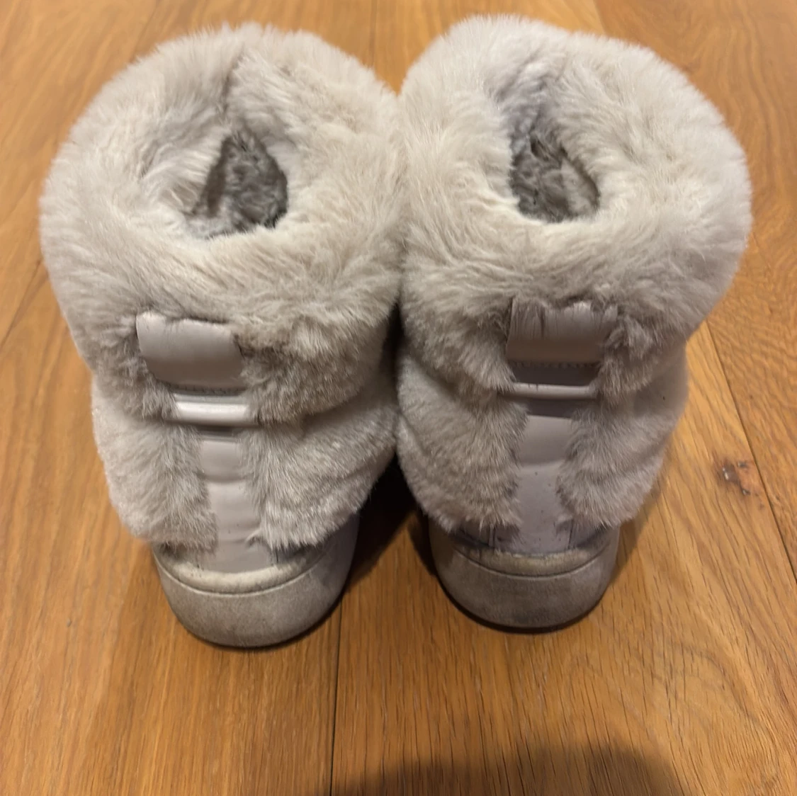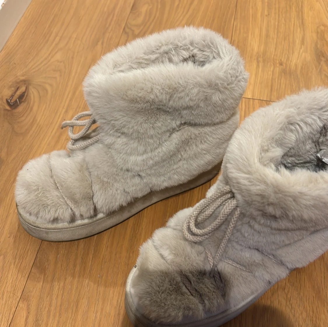 Mysiga grå boots med pälsfoder och snörning. Perfekta för kalla dagar med en mjuk och varm insida. Nästan som nya! Inga defekter