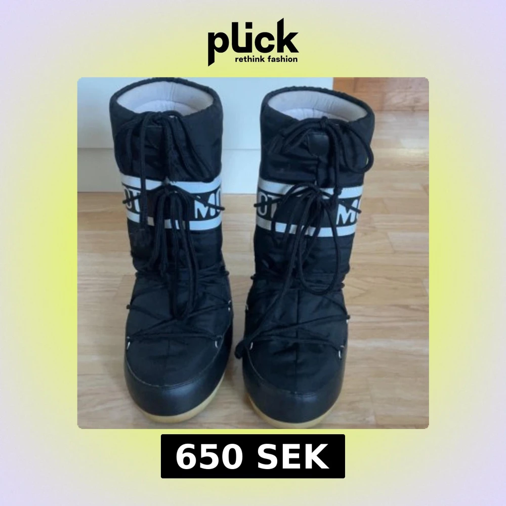 Säljer ett par svarta höga Moonboots, perfekta för vintern. De är i bra skick lite slitna i hälen. De är i storlek 36-38.