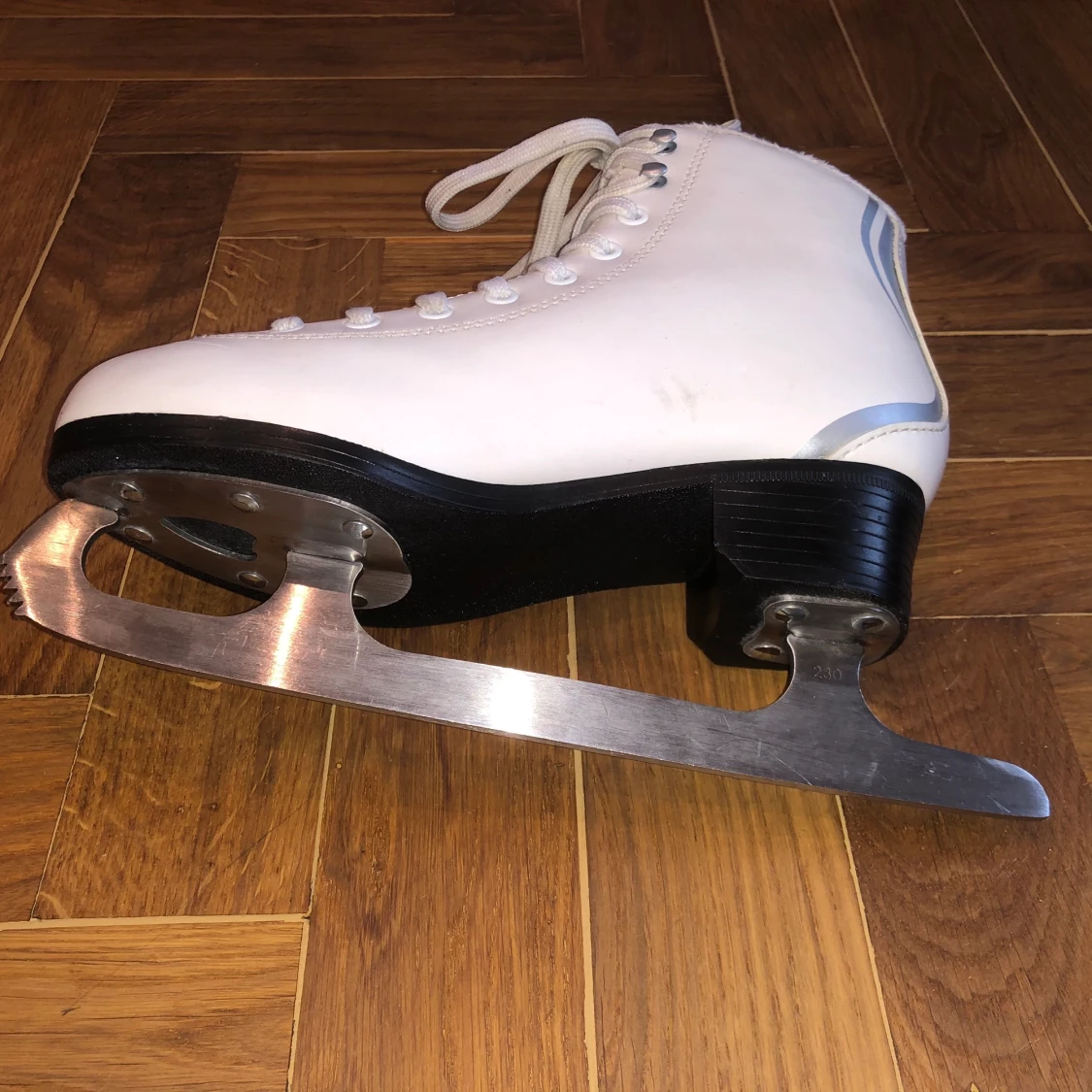 Säljer mina favoritskridskor som jag nu har vuxit ur. De behöver därför en ny ägare. Supersköna att åka i och bra skick endast några fläckar (se bild) Om du är intresserad kan jag skicka fler bilder. Nypris är 449 kr. Jag möts gärna upp i Stockholm men kan även leverera :) Då står köparen för frakten. Kontakta mig för mer info gällande frakt! Använder swish
