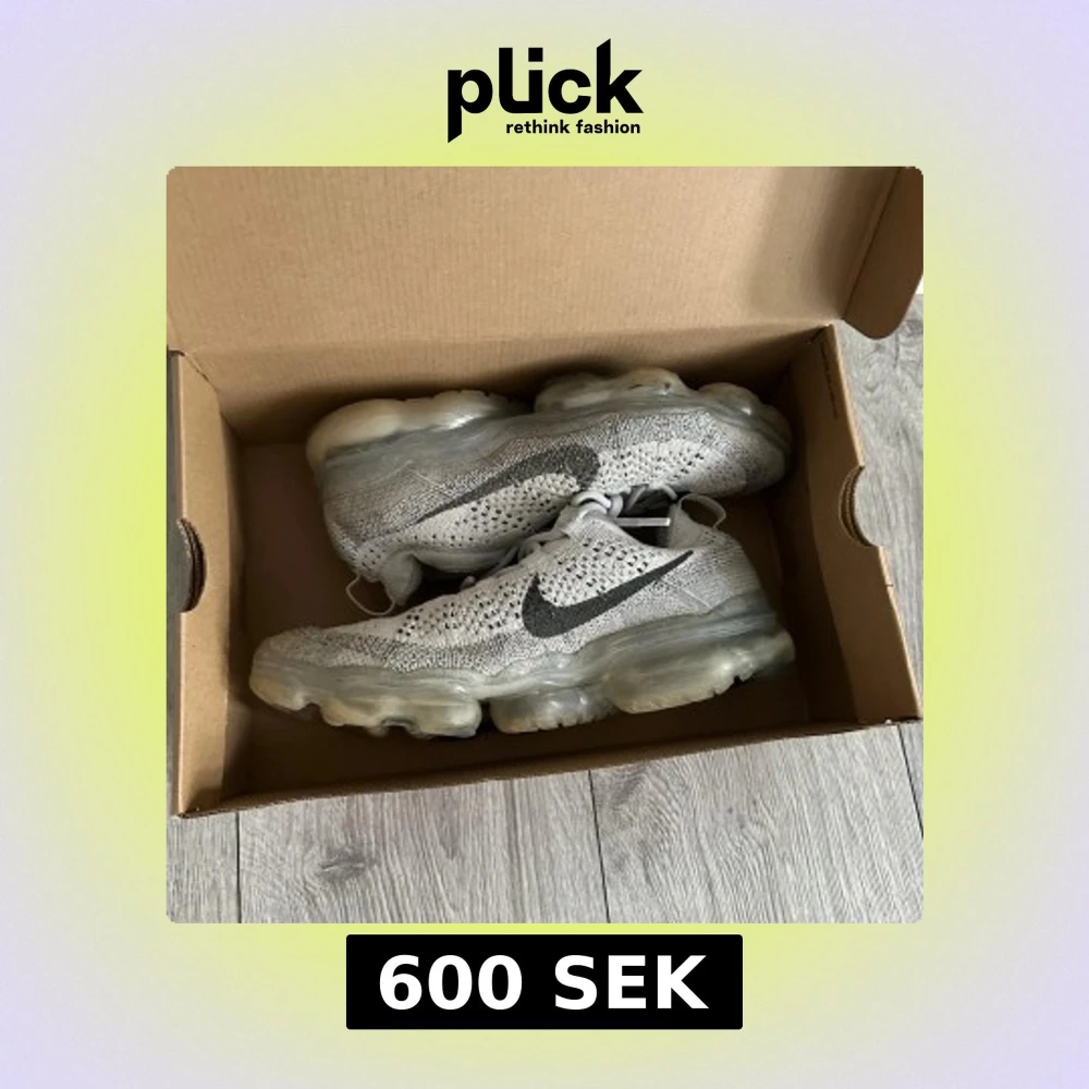 Säljer mina vapormax då de är för små för mig, de är i gott skick allt ser bra ut förutom att det finns en skada typ ett hål i den högra skorn som man inte ser, de är rena och hela och billiga för sitt pris originalbox medföljer kan även frakta om det behövs och de är köpta för 3000 kr från Nike! Kontakta gärna ifall du har några frågor
