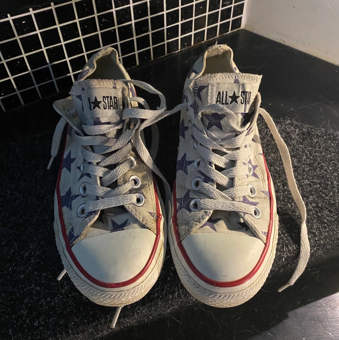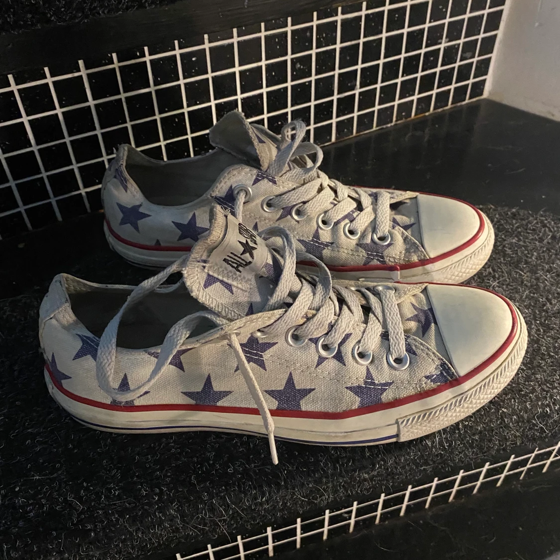 Säljer dessa skitsnygga populära Converse med blåa stjärnor på. Säljer pga att jag tyvärr växt ur de. Sparsamt använda-fint skick! Stl 37,5❣️hör av dig vid intresse, frågor, pris kan diskuteras!!💝