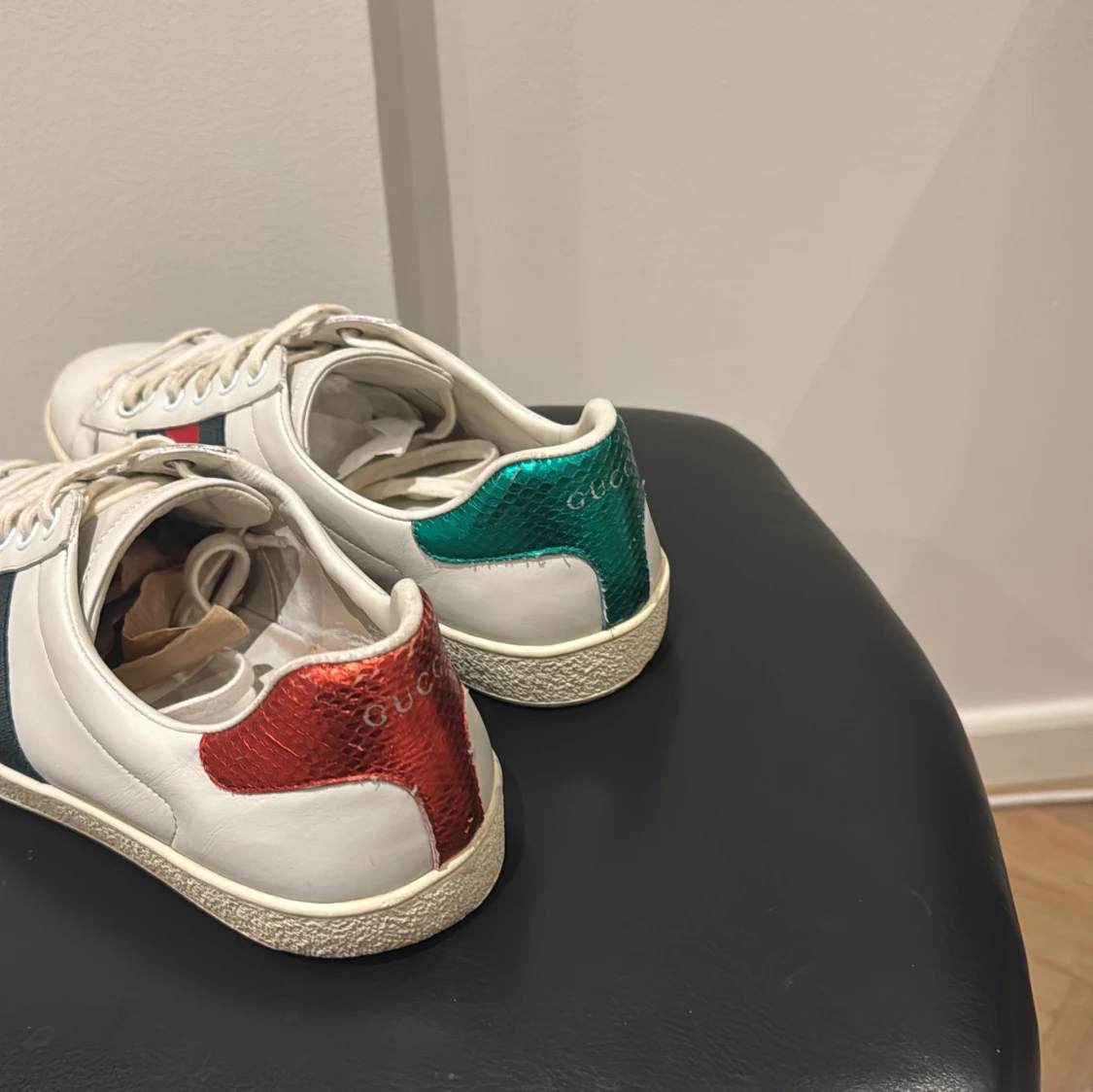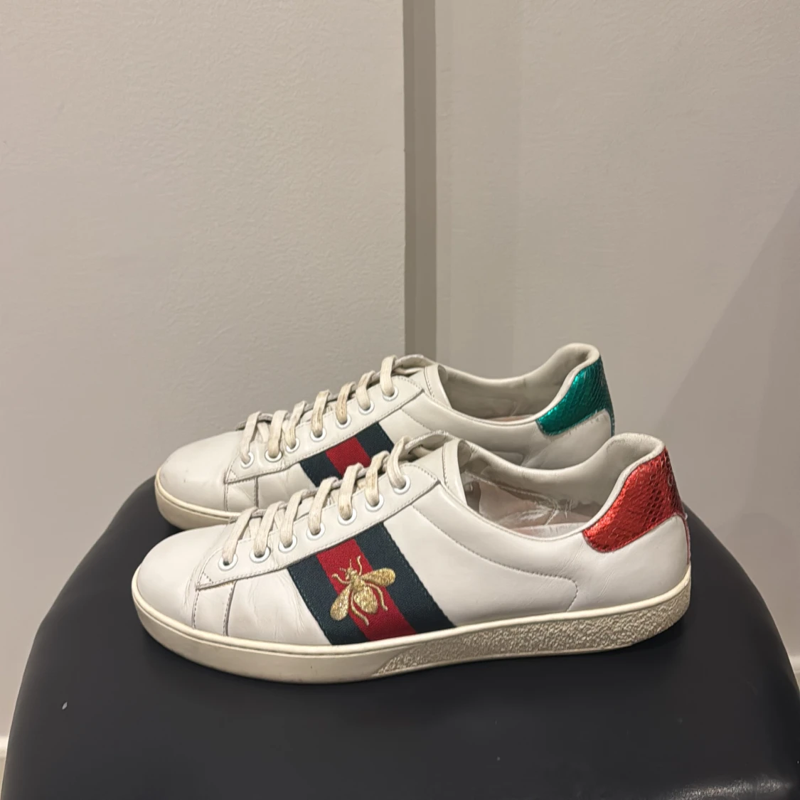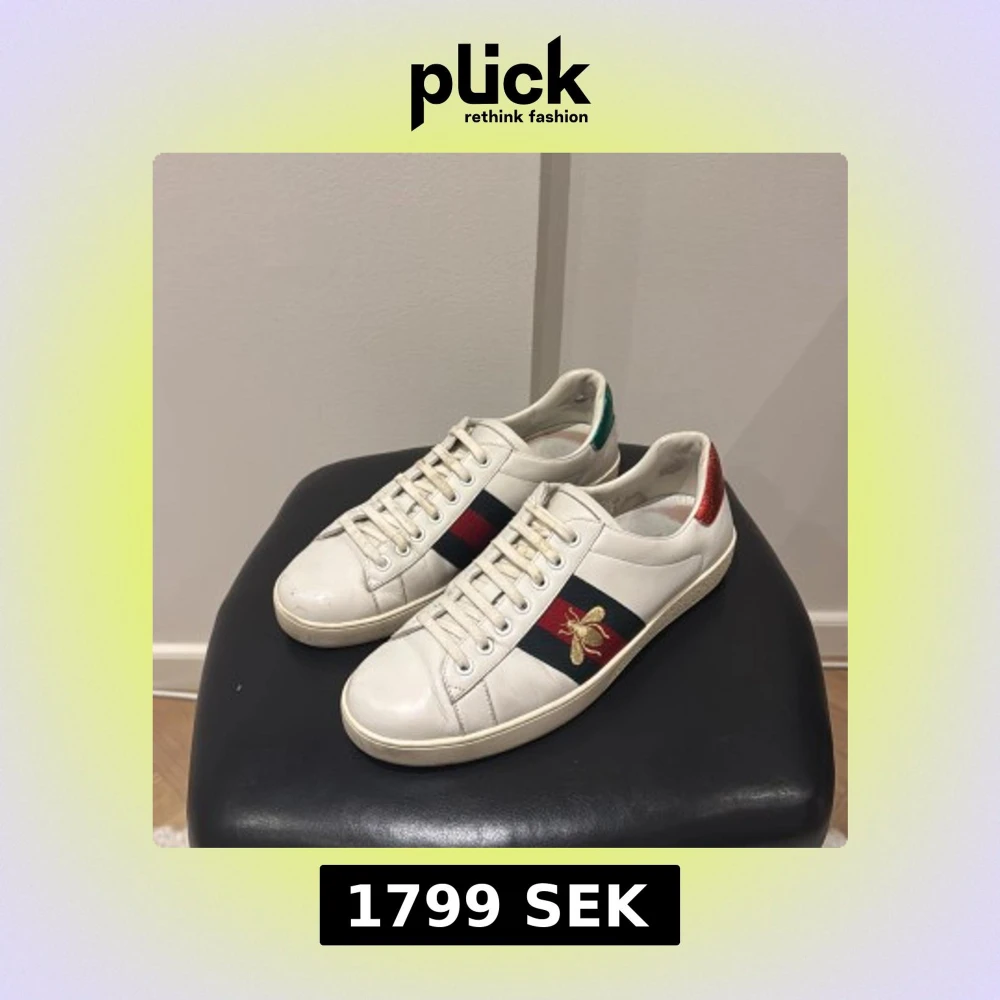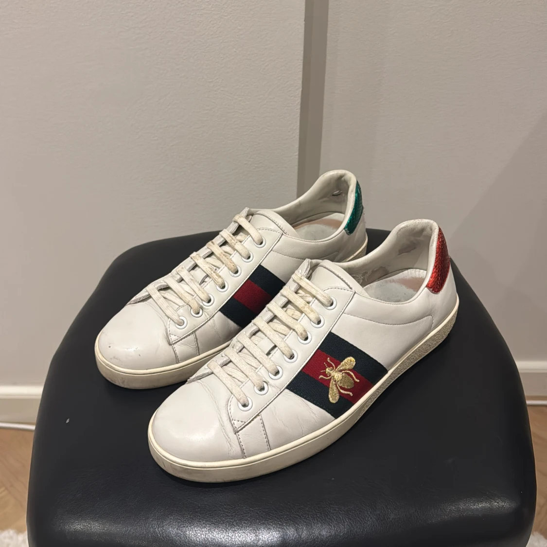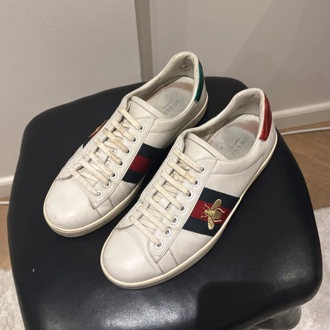 Gucci ace skor. Skick 7/10 se bilder. Medföljer endast skor. Storlek 43 passar 44.