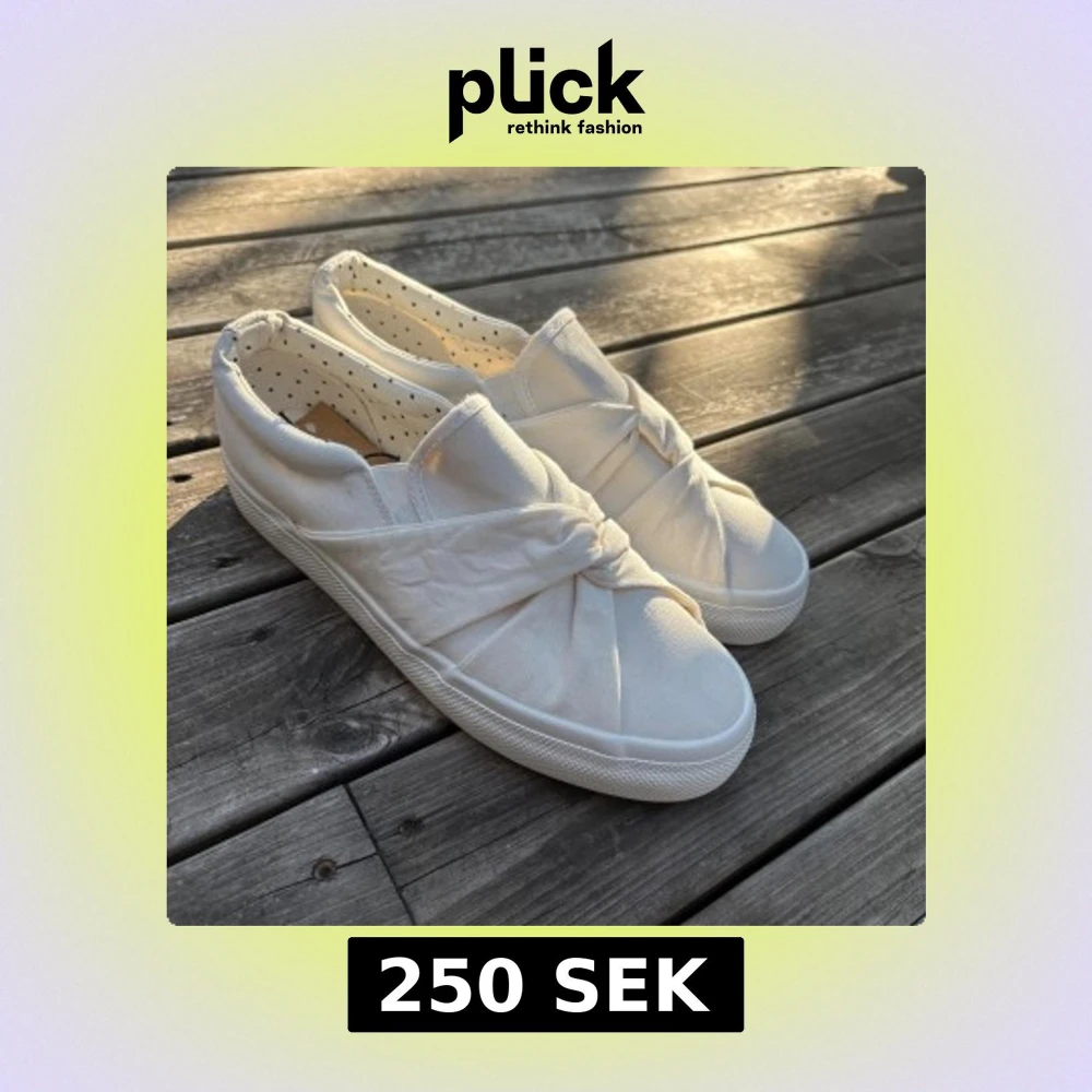 Säljer ett par vita slip-on sneakers i tyg med snygg knutdetalj framtill. Aldrig använda och perfekta till exempelvis student💕