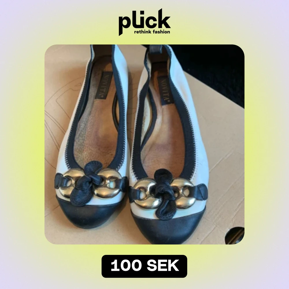 Vit/svarta ballerinaskor med guldig detalj i läder från Novita (scorett) i storlek 38. SUUUPERSKÖNA att gå i.