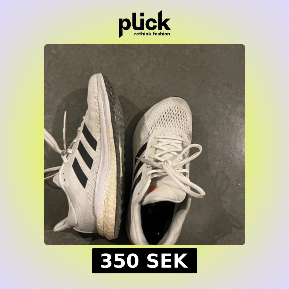 Snygga vita Adidas sneakers med klassiska svarta ränder. Skorna har snörning och en bekväm sula som ger bra stöd. Perfekta för både träning och vardag.