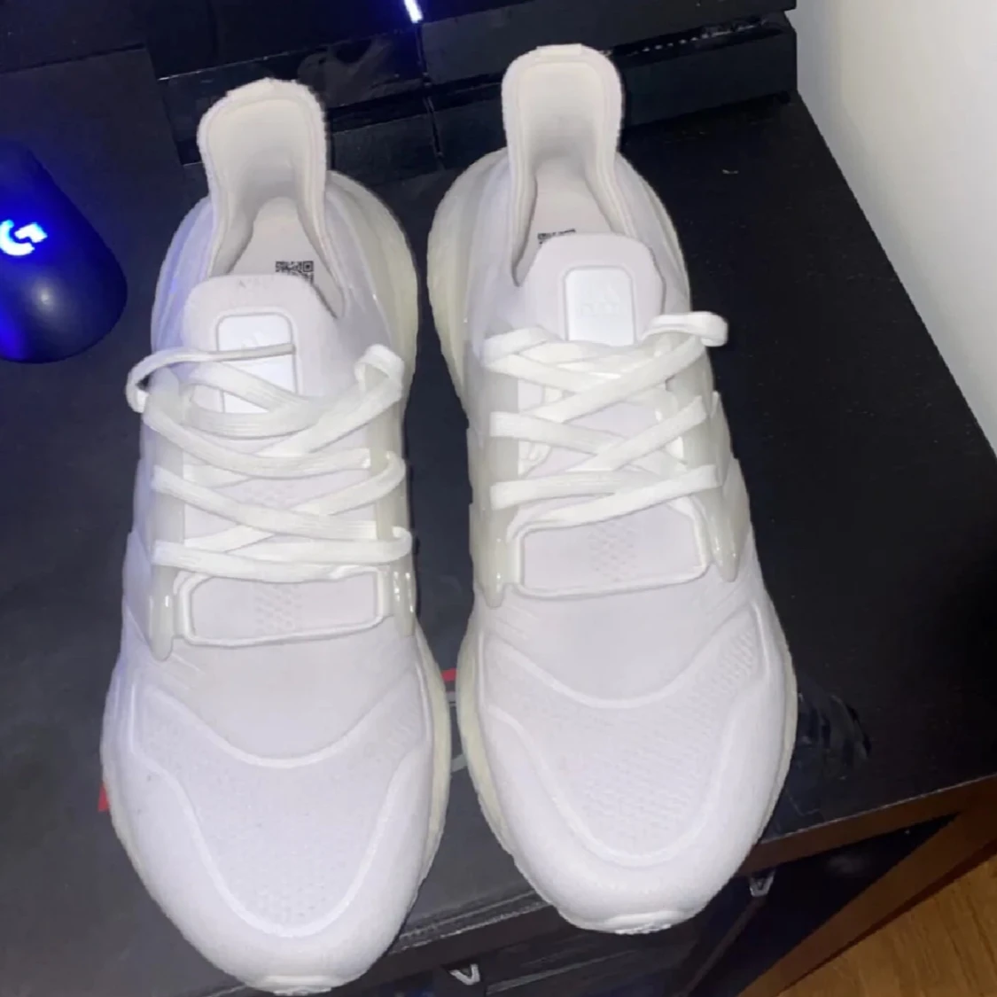 Säljer ett par vita Adidas Ultraboost i mycket bra skick. De har använts bara en gång. Möts upp i Stockholm och endast Swish!!