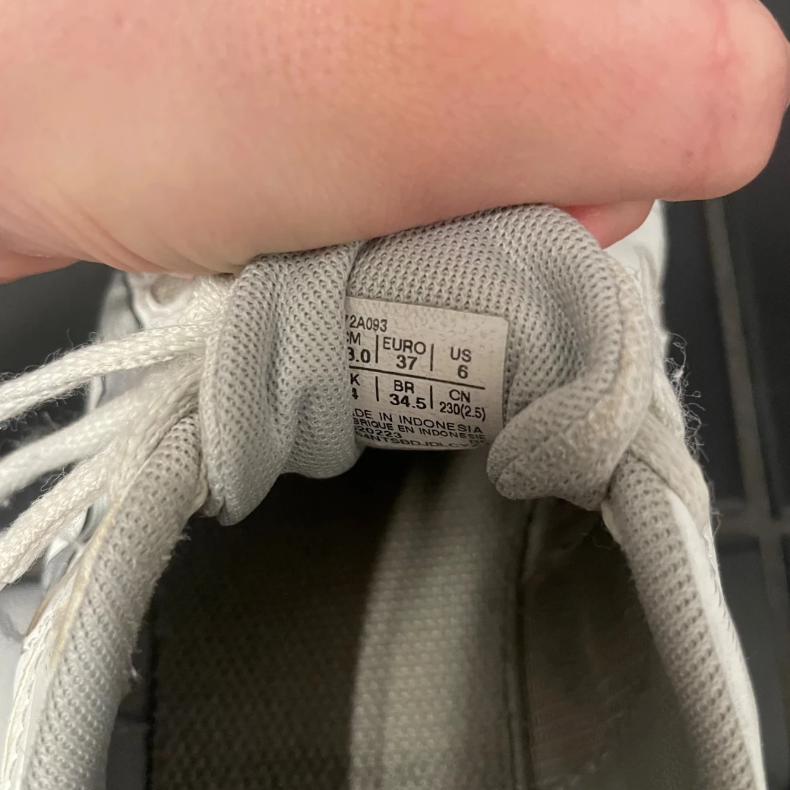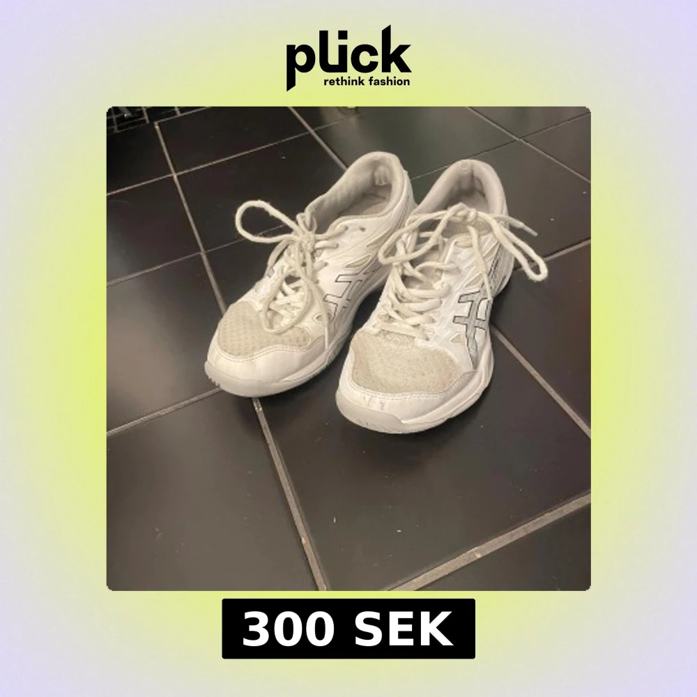 Säljer ett par vita Asics sneakers i storlek 37. Skorna har klassisk sportig design med mesh och syntetdetaljer, snörning och rund tå. Perfekta för dig som gillar en clean och enkel look till vardags eller träning.Kan ge skavsår i ena skon men har inte hänt.