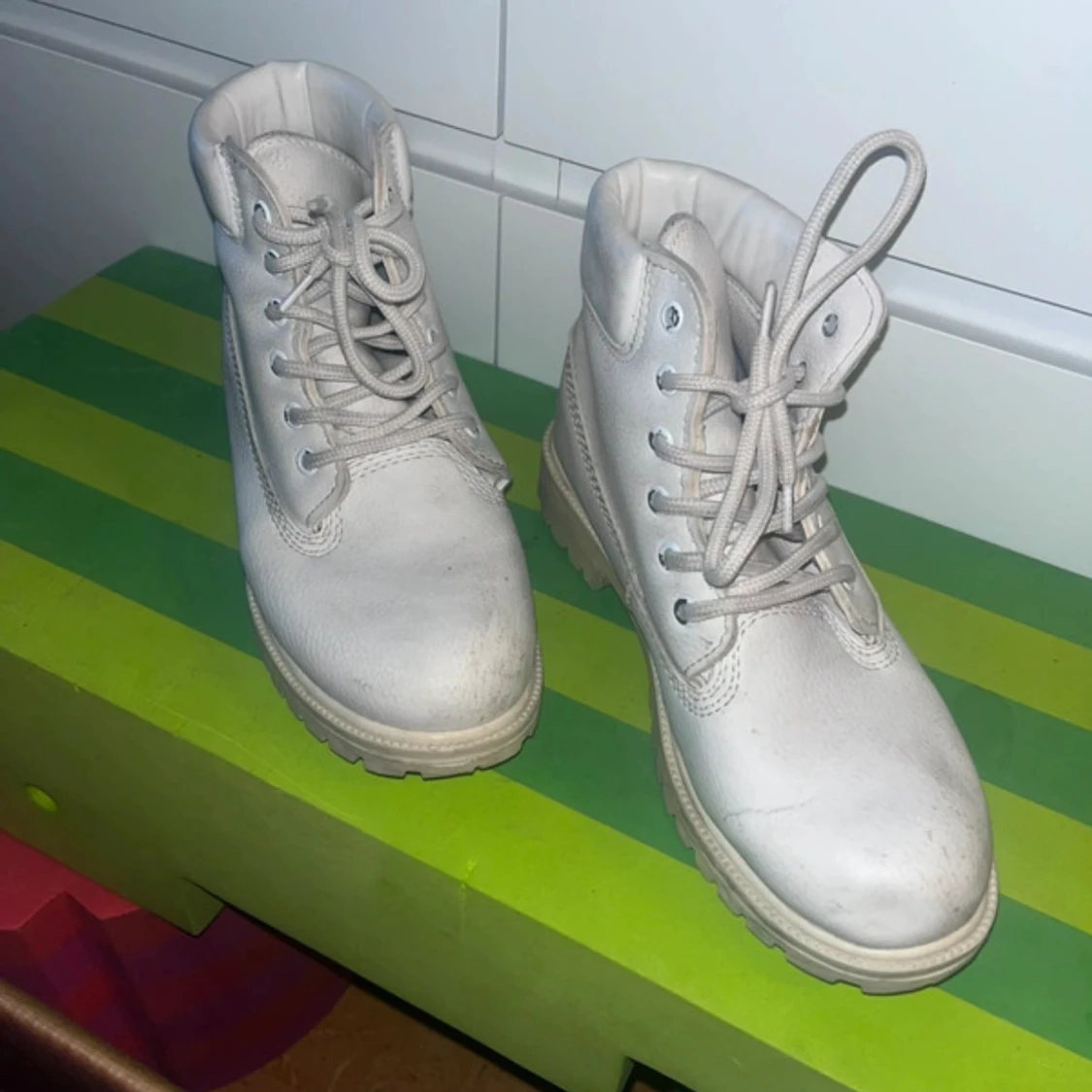 Coola vita boots med grov sula och snörning hela vägen upp. Skorna har rund tå och är tillverkade i syntetmaterial med vadderad kant upptill för extra komfort. Perfekta för dig som vill ha en clean och stilren look till höst och vinter.