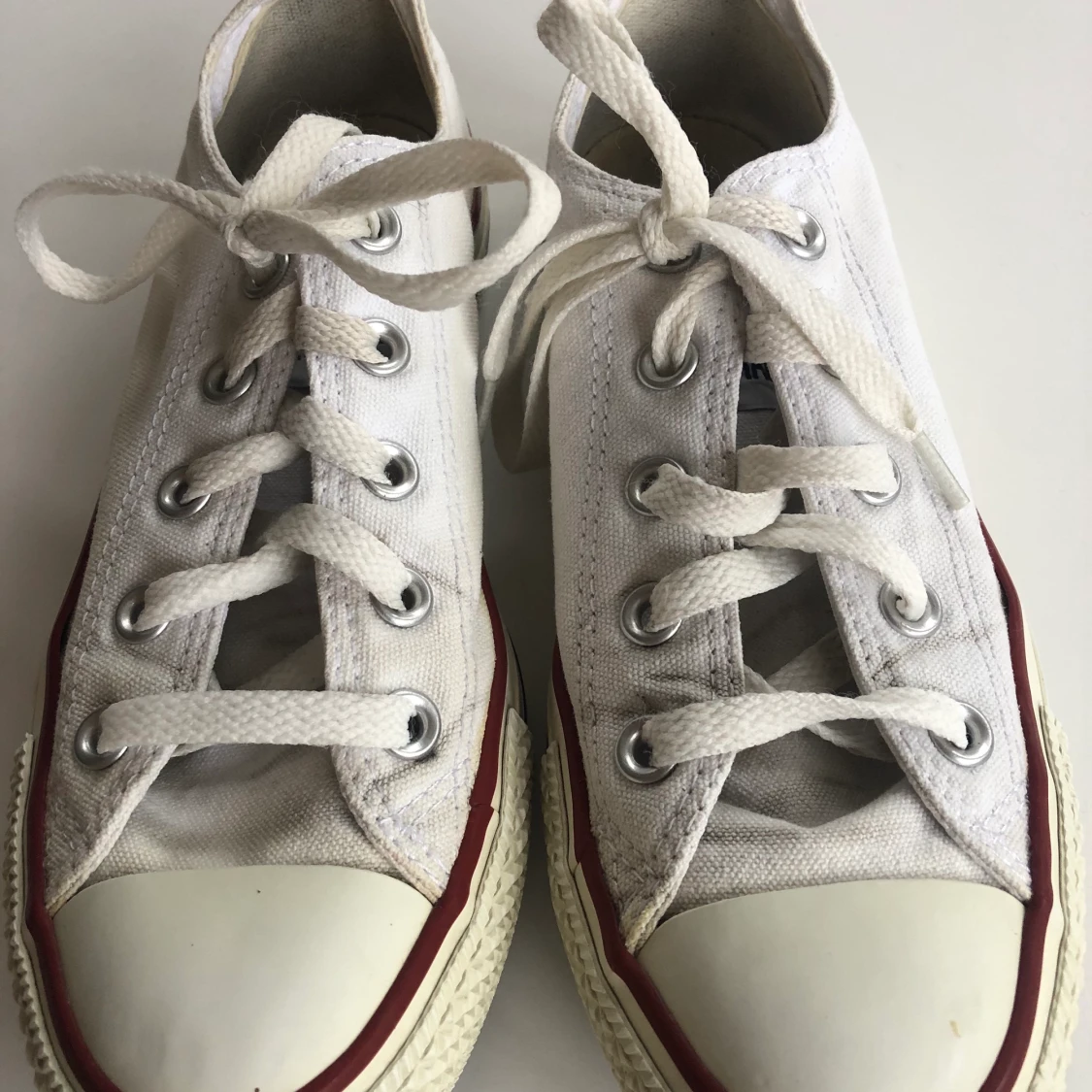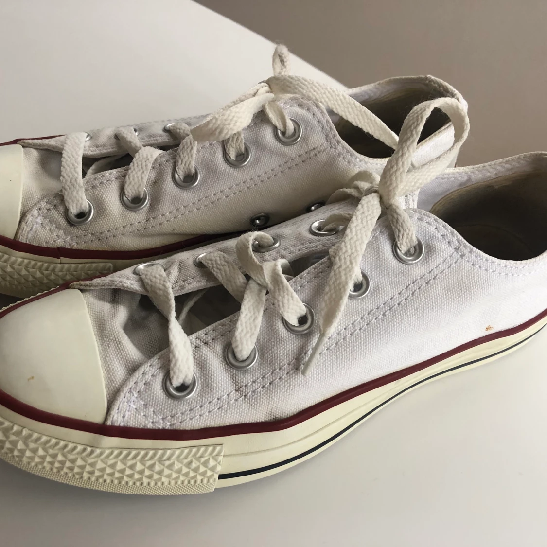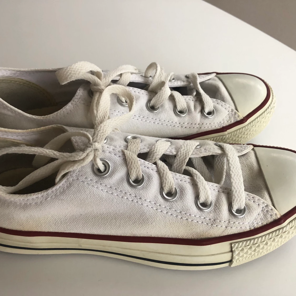 Vita Converse i bra skick, storlek 36,5. Nypris var 699kr, säljes för 250kr. Kan mötas upp i Stockholm, annars står köparen för frakten.