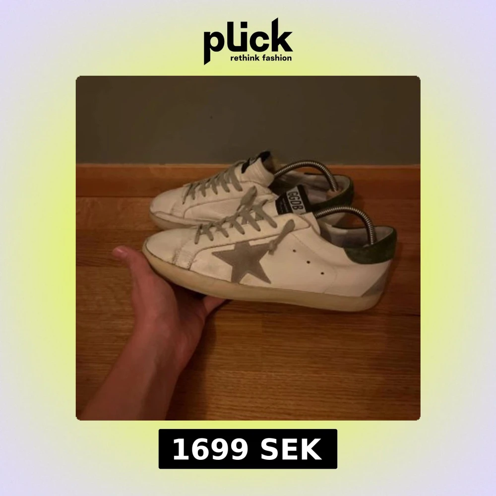 Säljer ett par vita Golden Goose sneakers med grå mockadetaljer och ikonisk stjärna på sidan. Skorna är i storlek 41 och är i nästan helt nyskick, är perfekta för hösten. Säljs av oss för 1699kr, priset kan diskuteras.