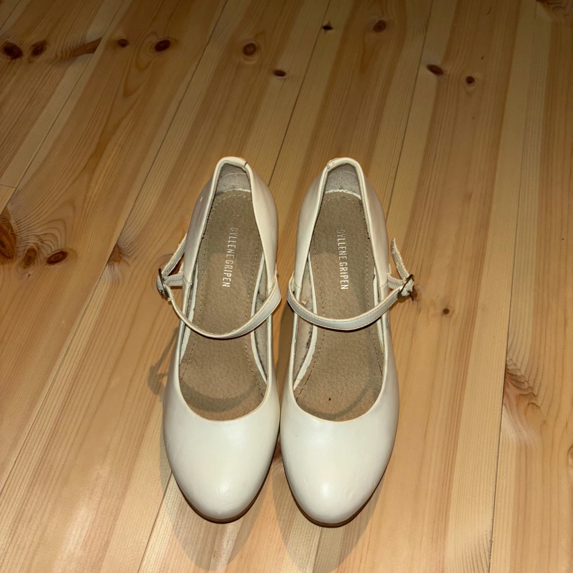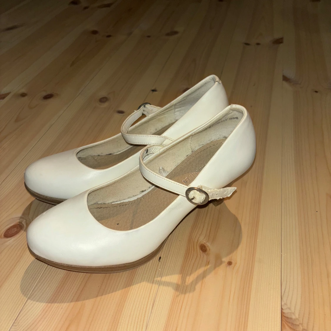 Säljer dessa vita klackarna, de är använda så de har lite slitningar vid spännet men ingenting man tänker på. Superfina och enligt mig bekväma!