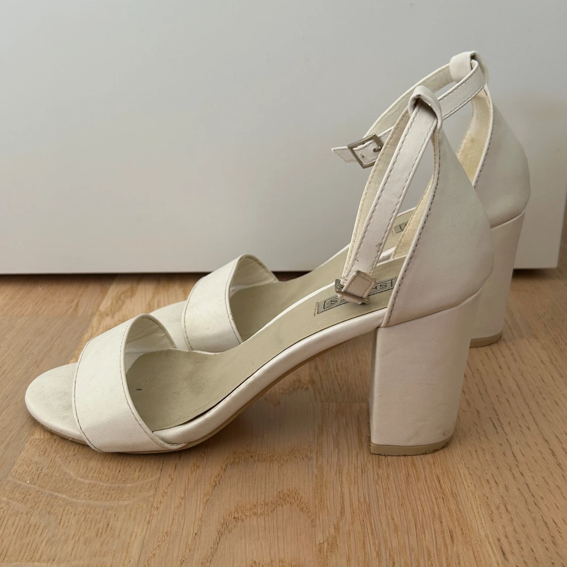 Vita klackar från Nelly. Lite fläckar som ej syns när man har på sig skon, därav priset. supersköna. Strl 36
