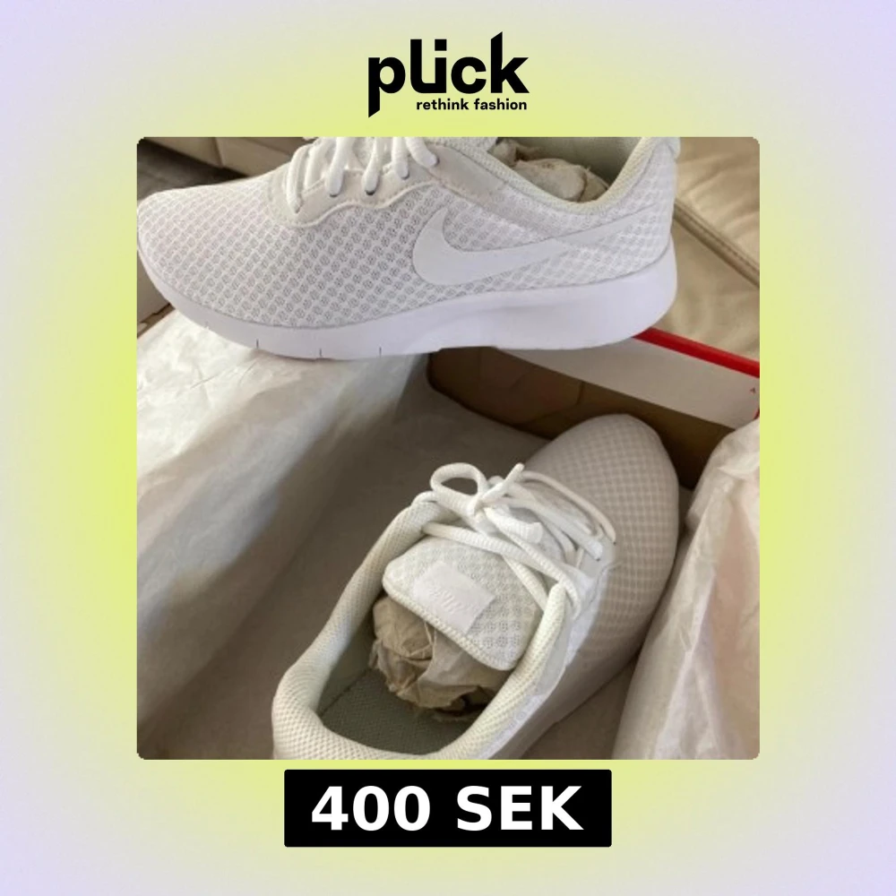 Fräscha vita sneakers från Nike med luftig mesh-ovandel och klassisk swoosh på sidan. Skorna har snörning och en lätt, flexibel sula som passar perfekt för en aktiv vardag.Storlek 37,5 23,5cm. Helt nya oanvända.