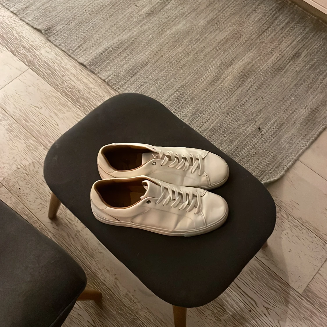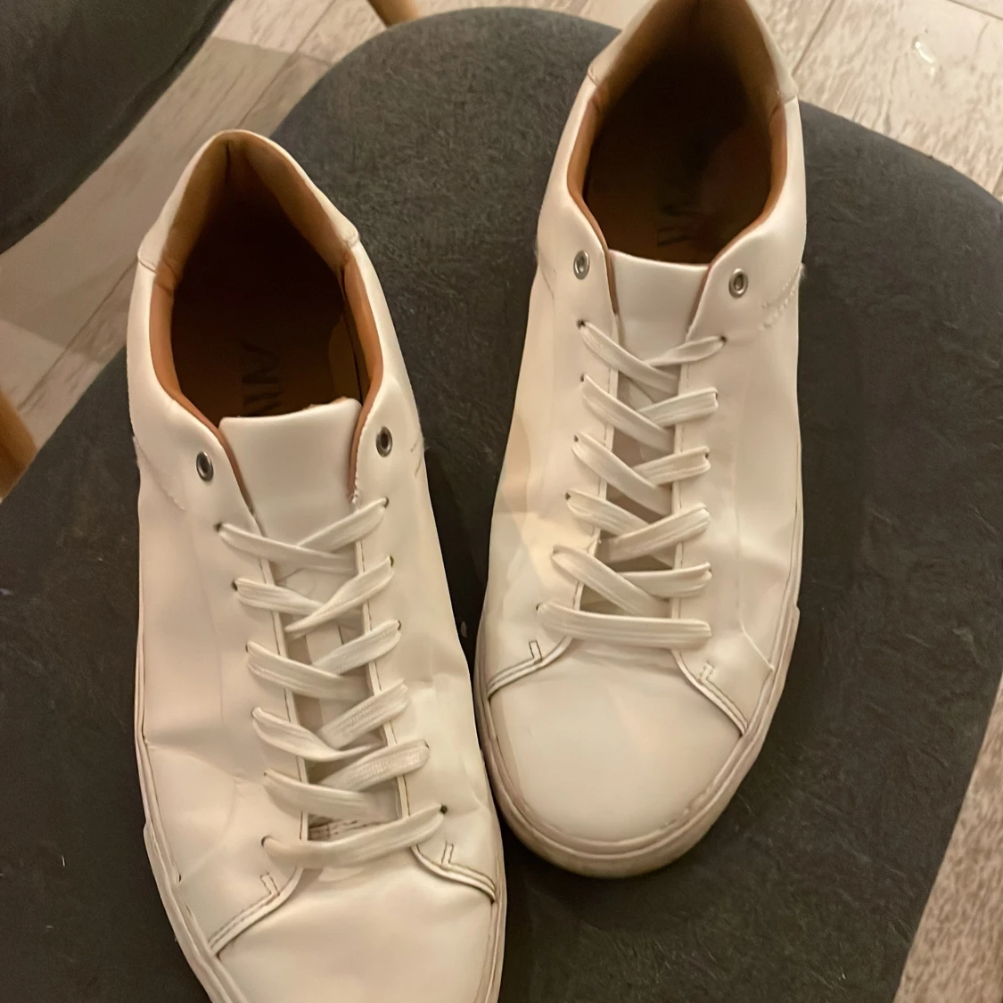 Snygga vita sneakers i minimalistisk design med rund tå och platt sula. Skorna har vita snören och diskreta sömmar, samt en ljusbrun insida. Perfekta för dig som gillar en clean och stilren look.