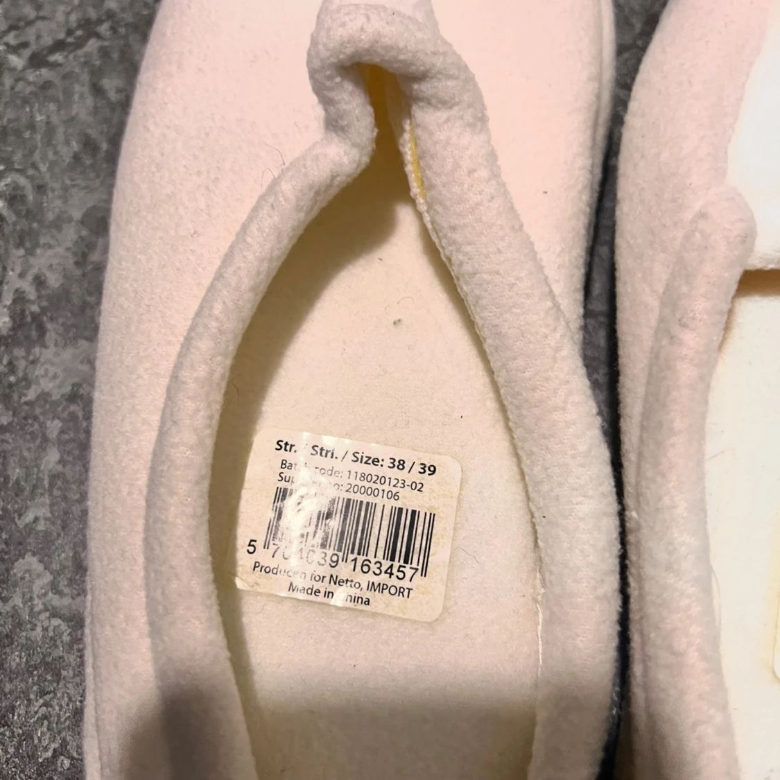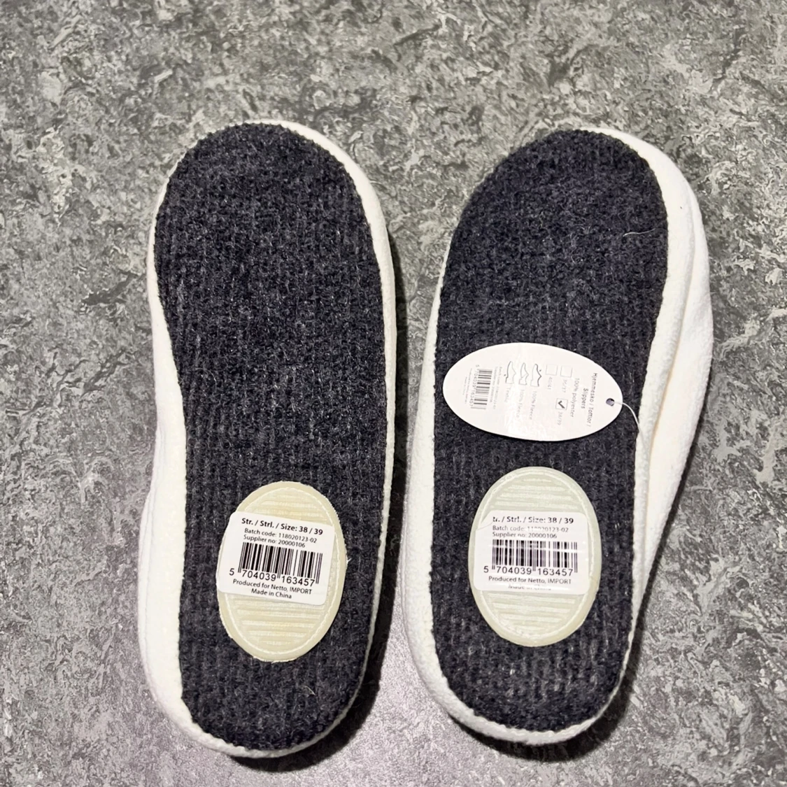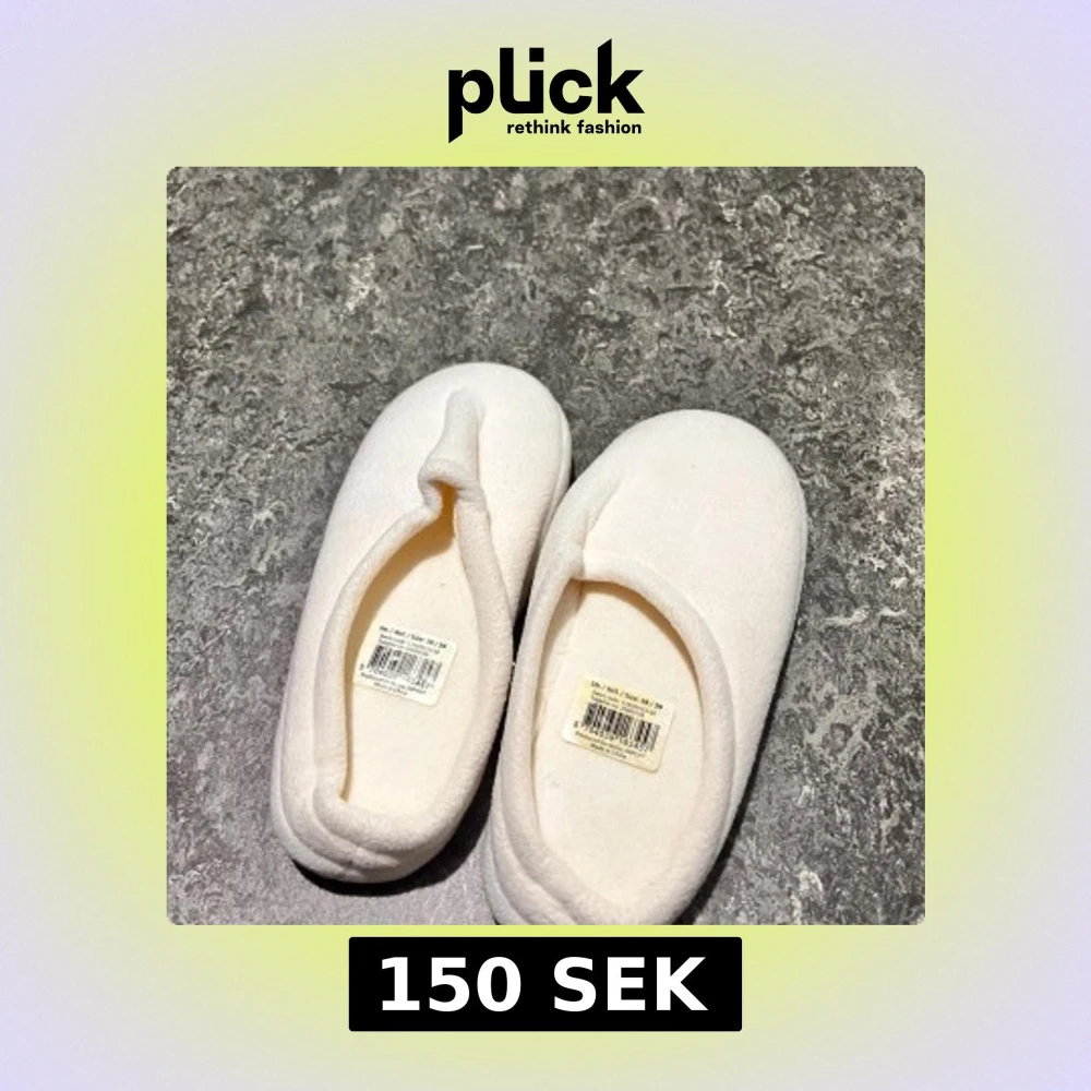 Supermysiga vita ballerina-tofflor i mjukt syntetmaterial. De har en enkel och rundad form med grå platt sula som ger skön komfort inomhus. Perfekta att glida runt i hemma när du vill ha det extra bekvämt.