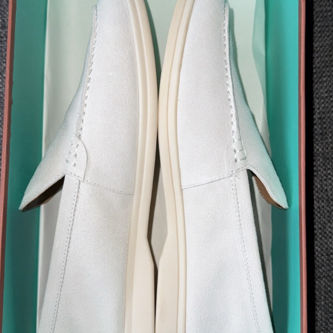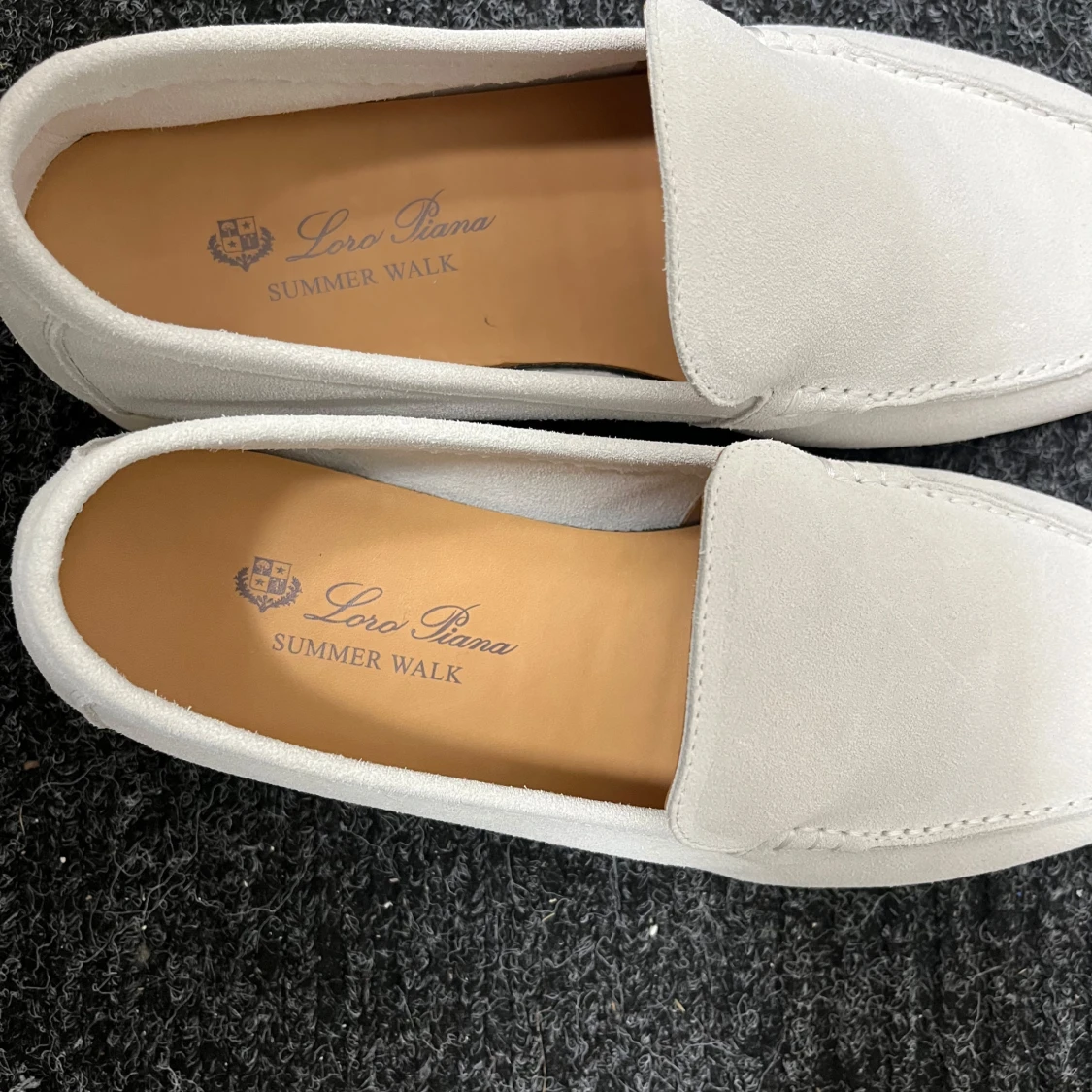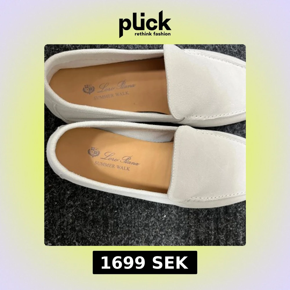 Säljer ett par stilrena vita loafers från Loro Piana Summer Walk. Skorna är i mjuk mocka med rund tå och platt sula, perfekta för en clean och fräsch look. Klassisk design utan snörning, passar till många outfits. Extremt snygga men säljer för att de tyvärr inte var min stil. Kan tänka mig att gå ner relativt mycket i pris då jag vill ha de sålda så snabbt som möjligt också. 👍