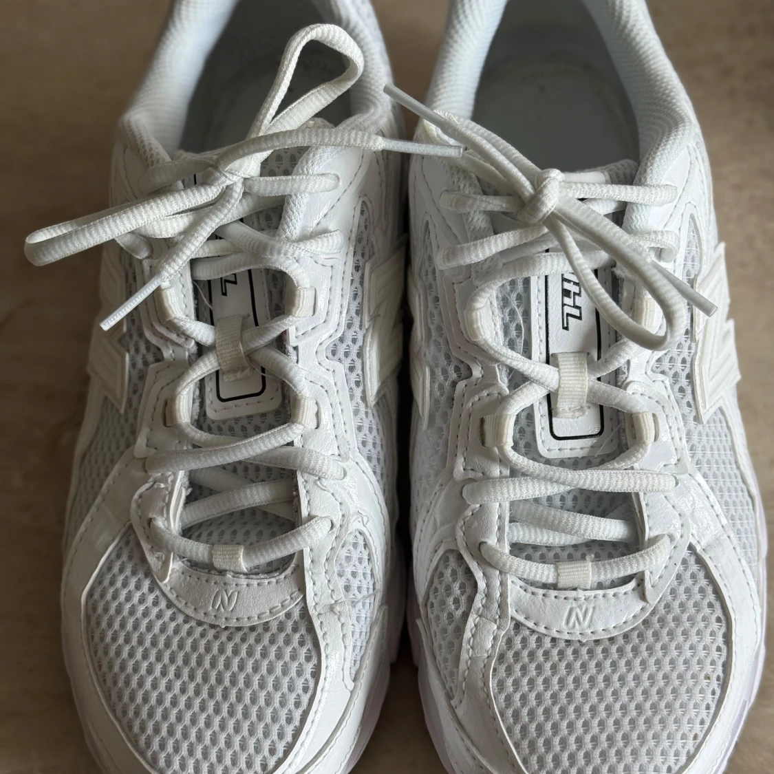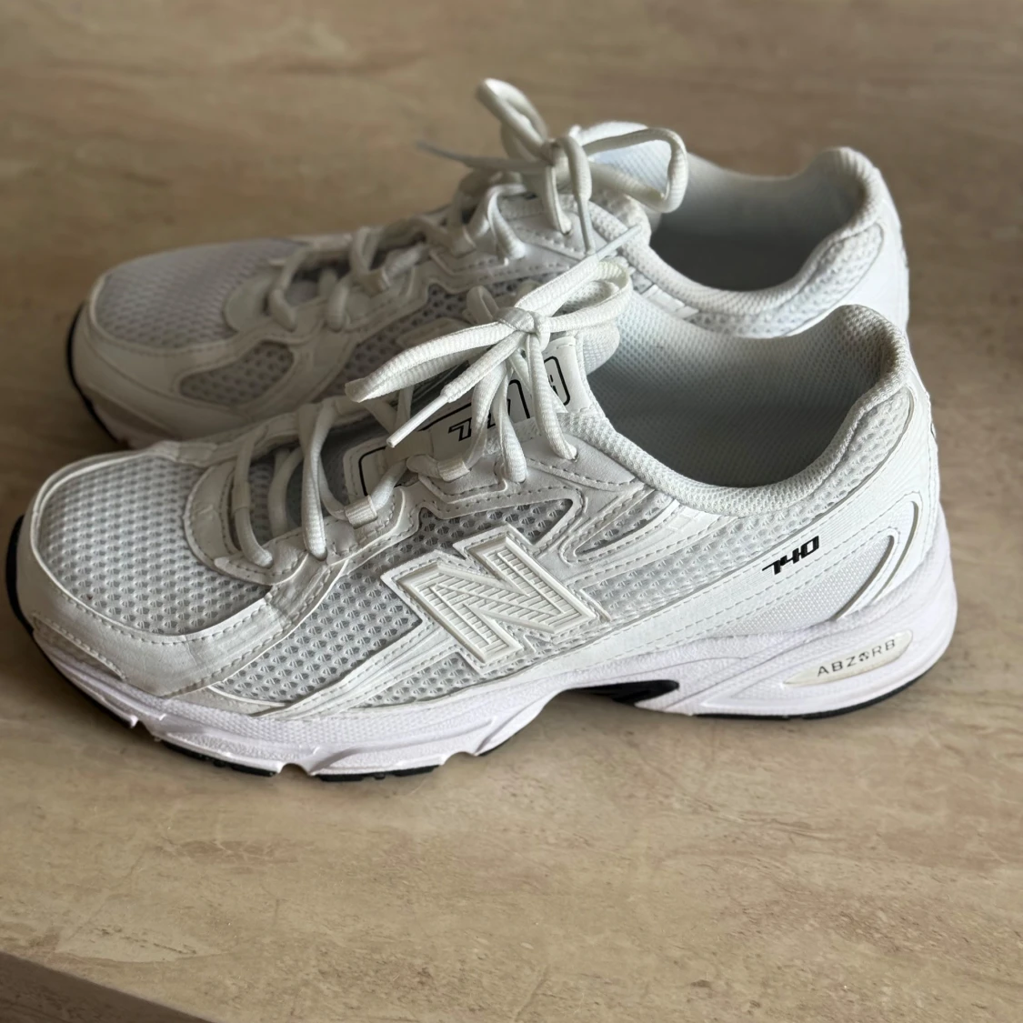 Snygga vita New Balance 740 sneakers med mesh och syntetdetaljer. Skorna har klassisk snörning, rund tå och en chunky sula med svarta detaljer undertill. Perfekta för dig som gillar sportig och clean stil. Otroligt bekväma. Storlek 39.5 passar 38-39 Köpta från Newbalance.se för 1400 kr för 2 månader sedan.